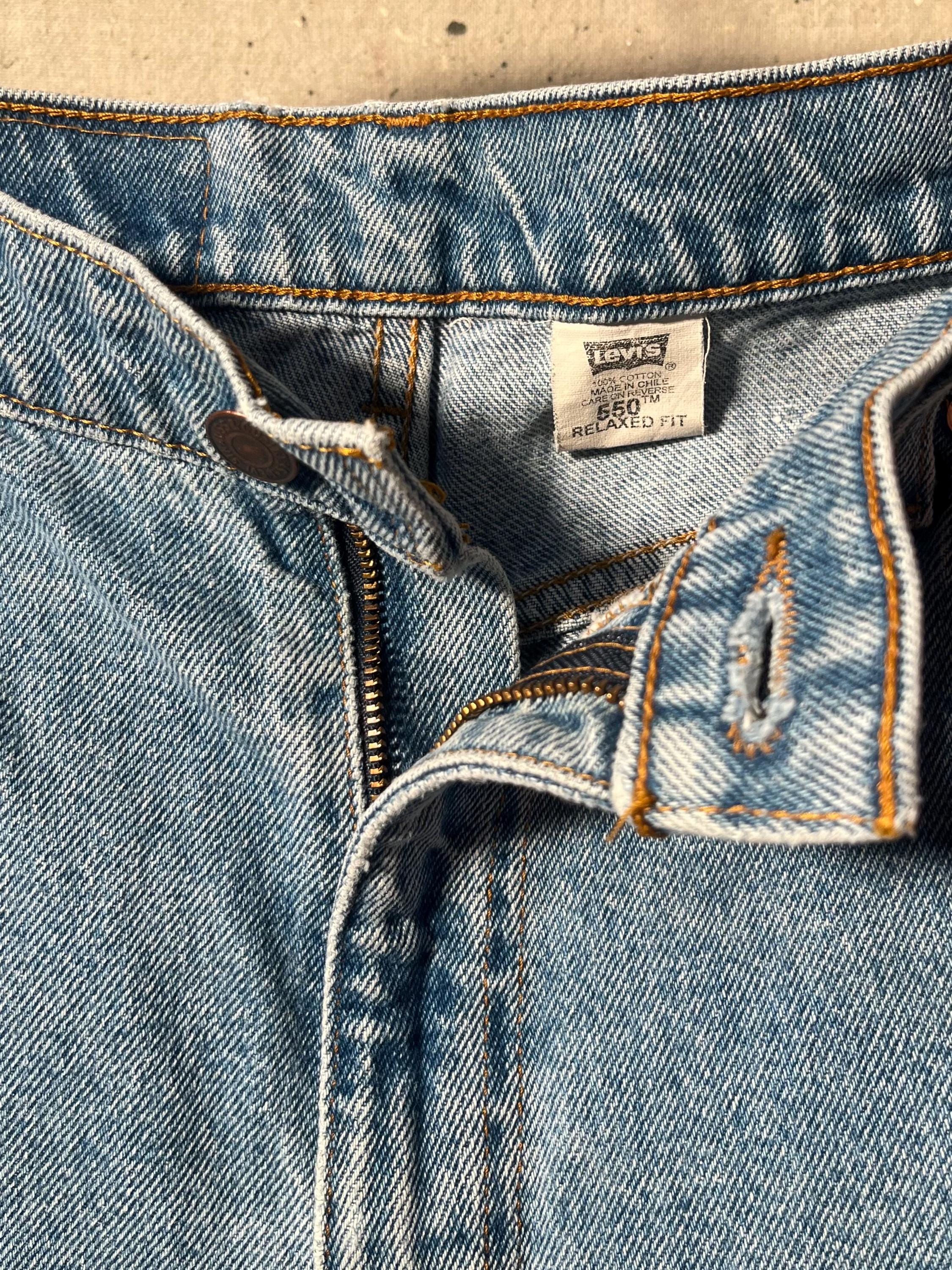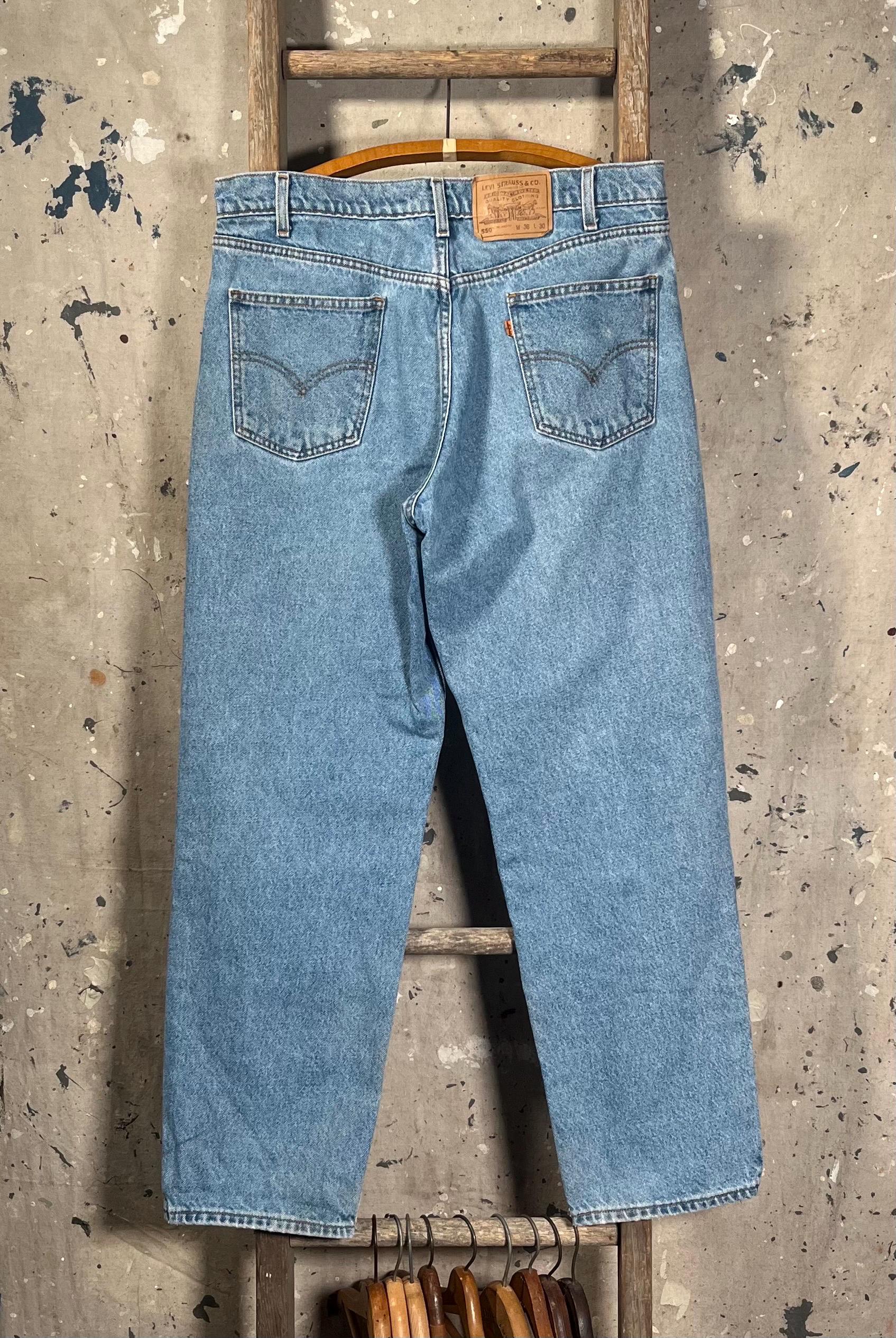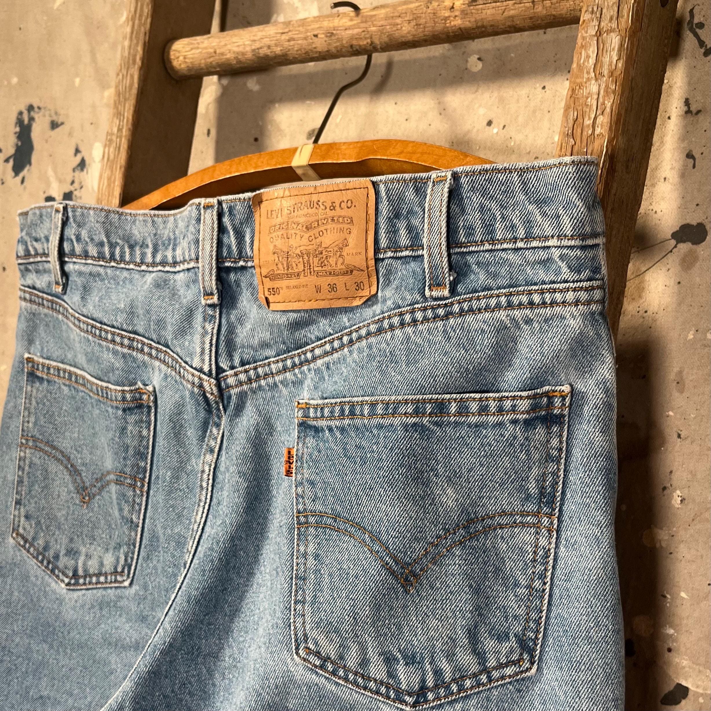 1980s Levi's 550 denim jeans. 36 waist Zipper fly. Perfect distressing throughout . Medium / light wash . See photos . Good condition.
