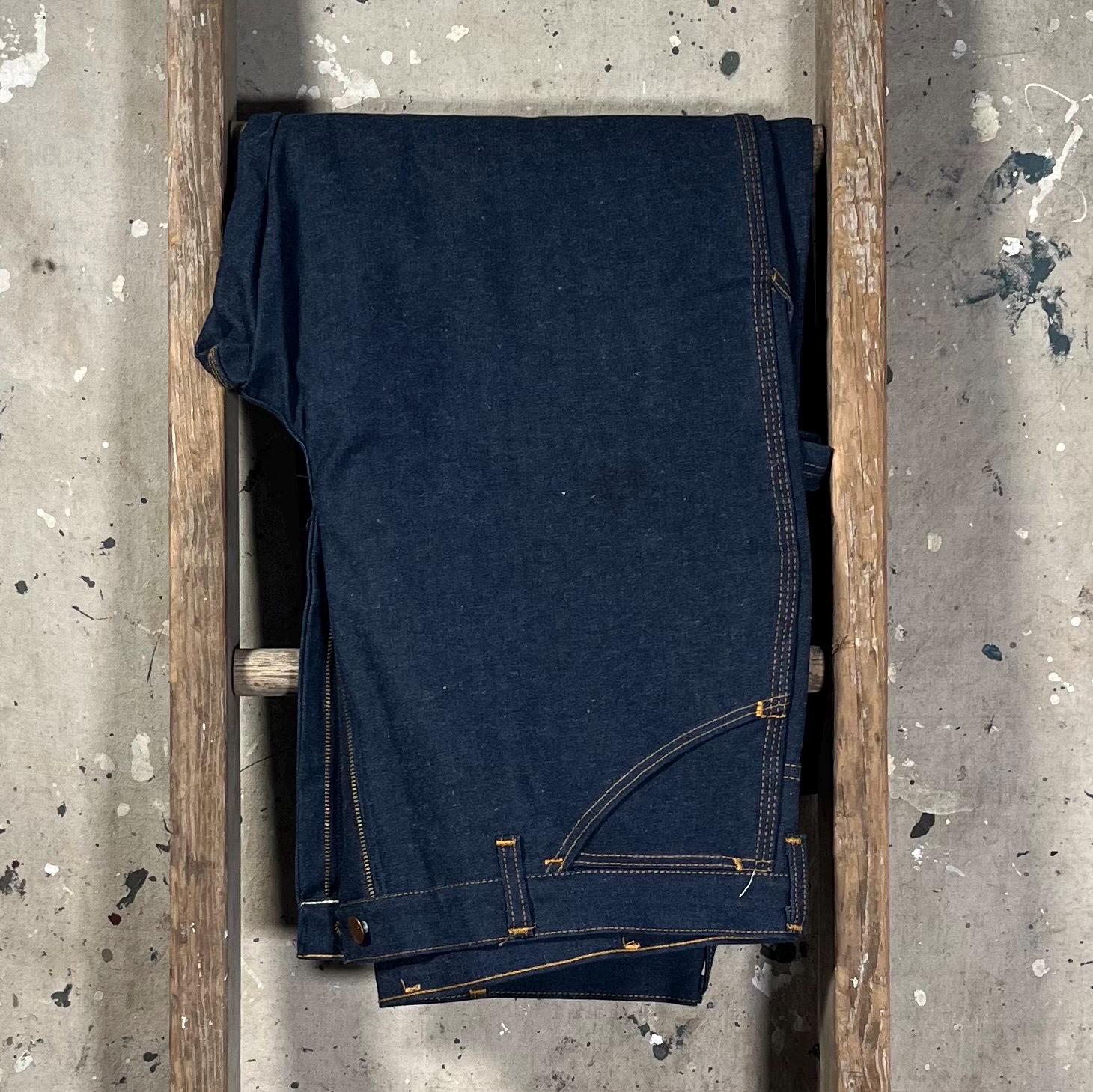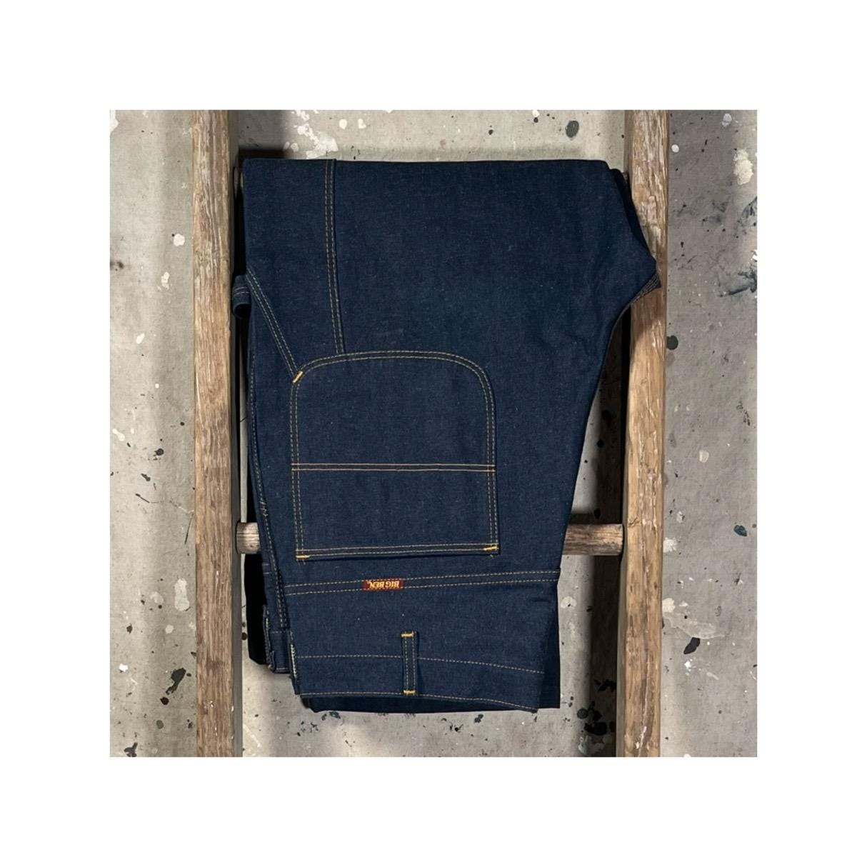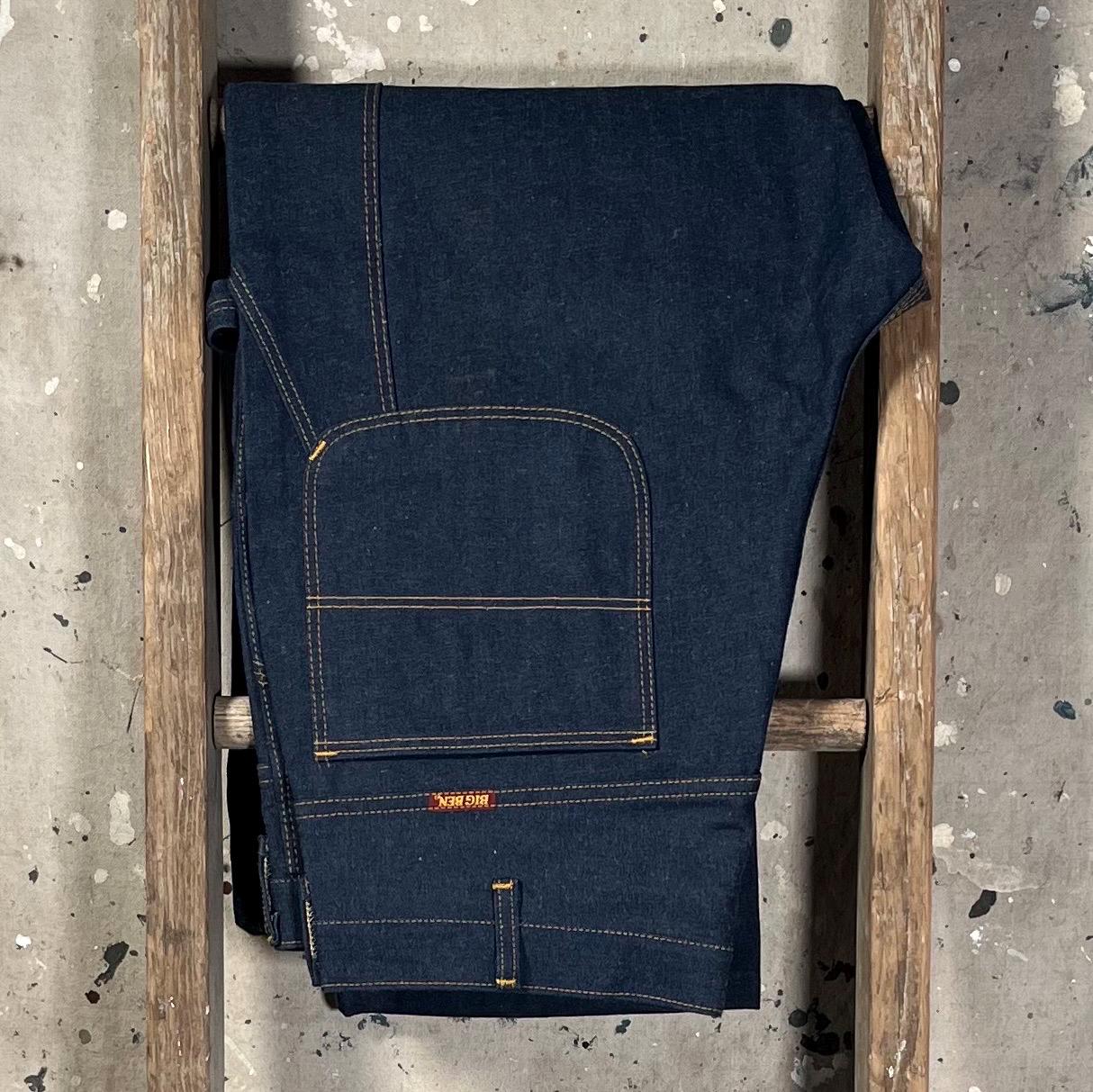 Deadstock 1980s Denim Carpenter jeans by Big Ben . Dark wash, triple stitch , talon zipper. New old stock, never worn - excellent condition .