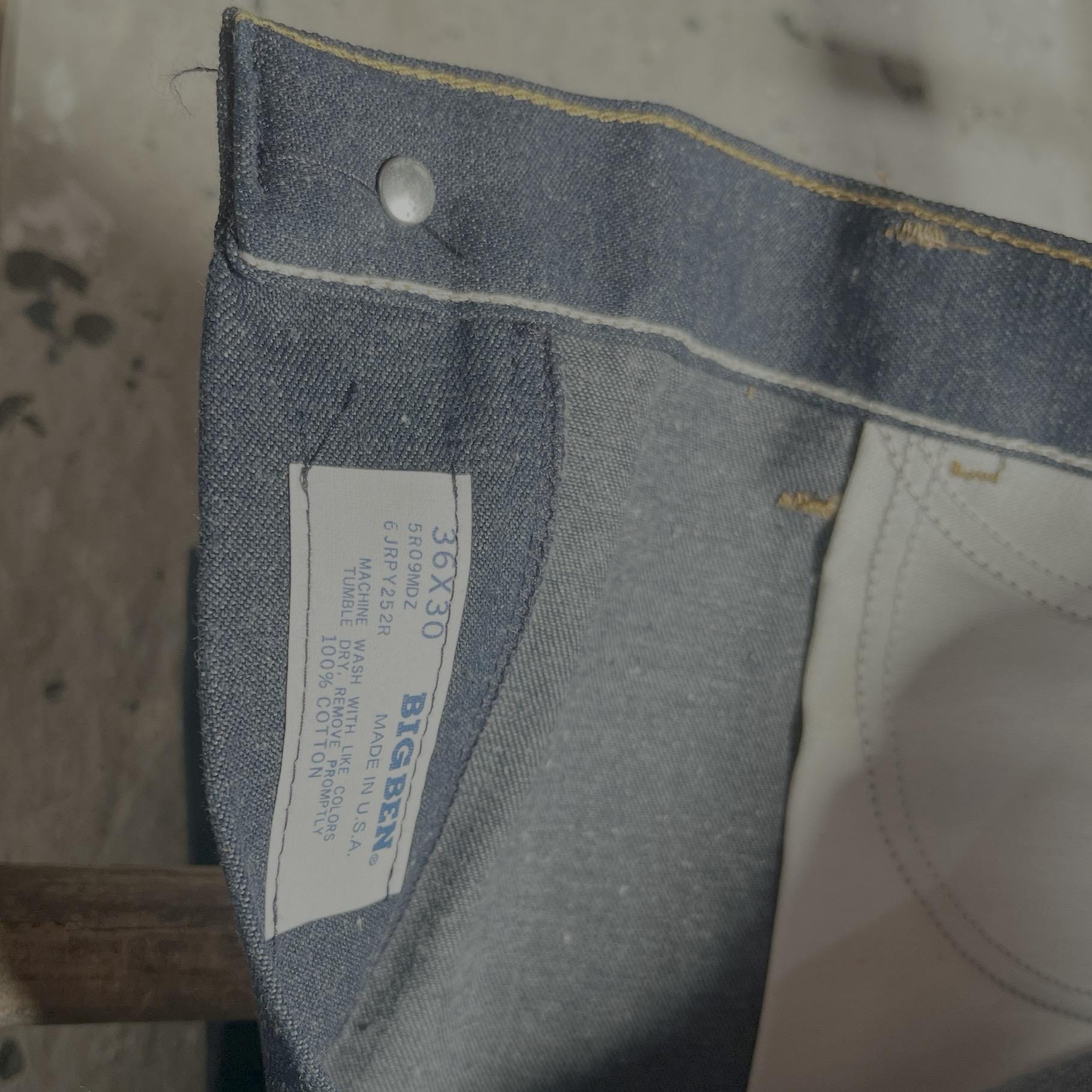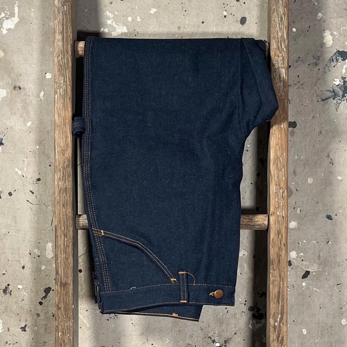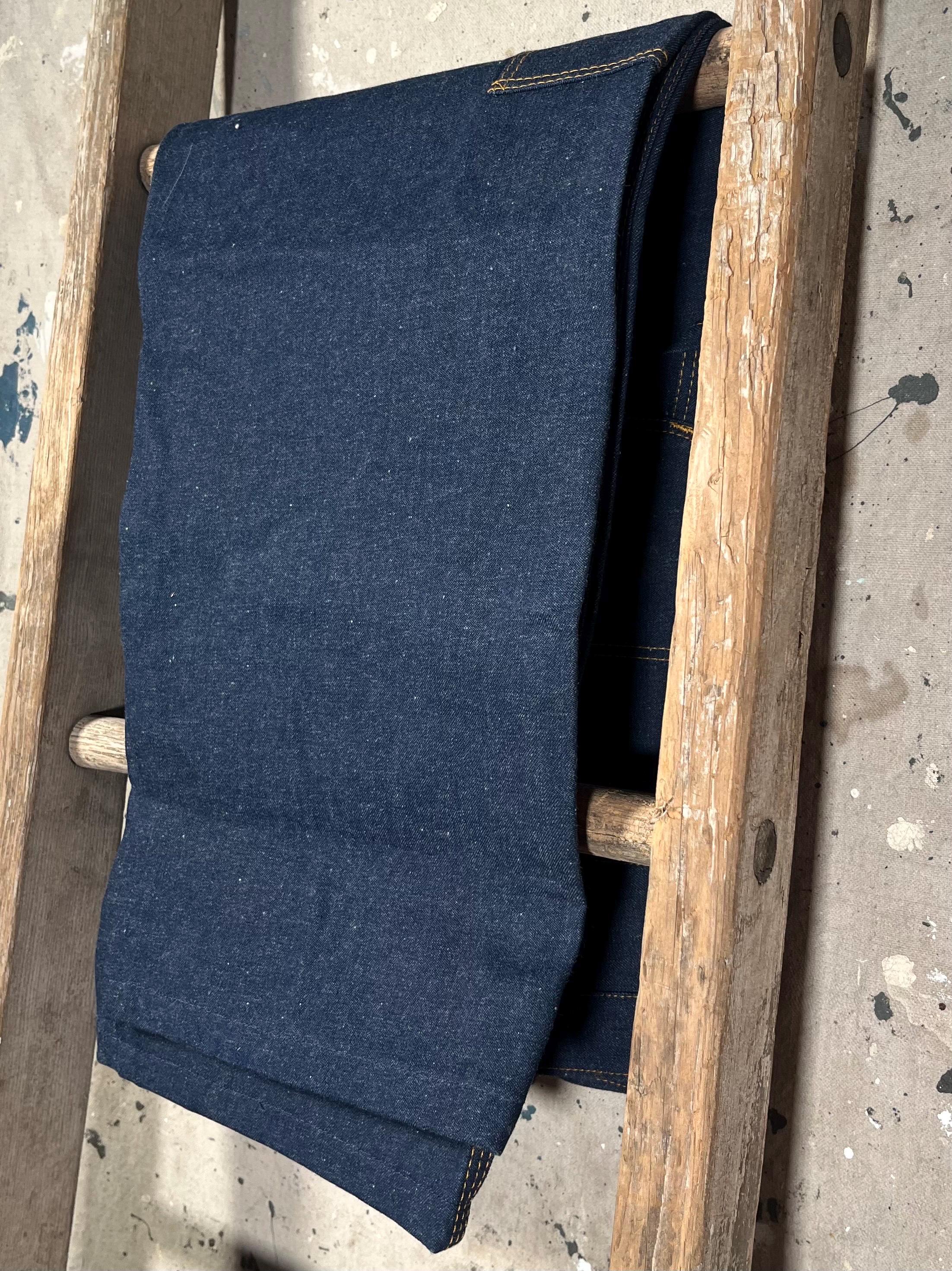 Deadstock 1980s Denim Carpenter jeans by Big Ben . Dark wash, triple stitch , talon zipper. New old stock, never worn - excellent condition .