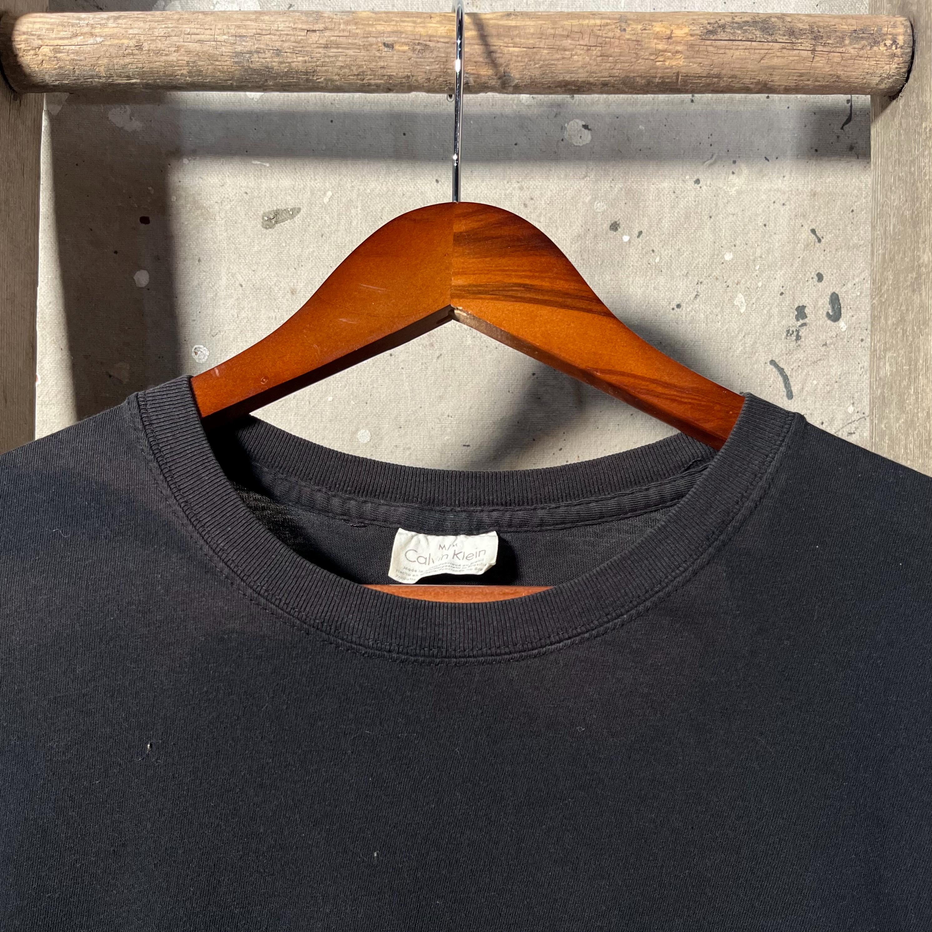 Nicely Faded 90s Black Undershirt by Calvin Klien. Threadbare tee with pin holes and great distressing throughout- see photos.