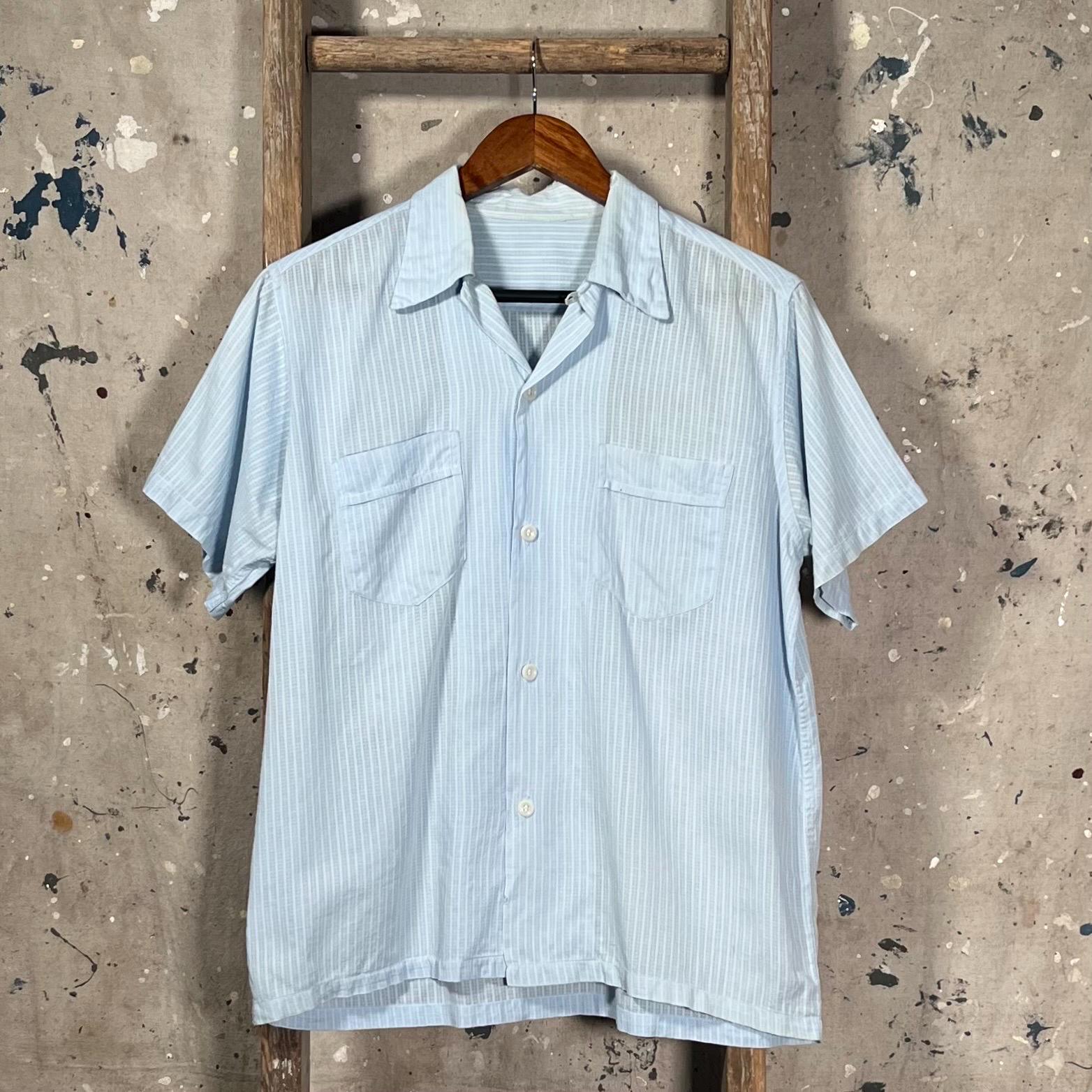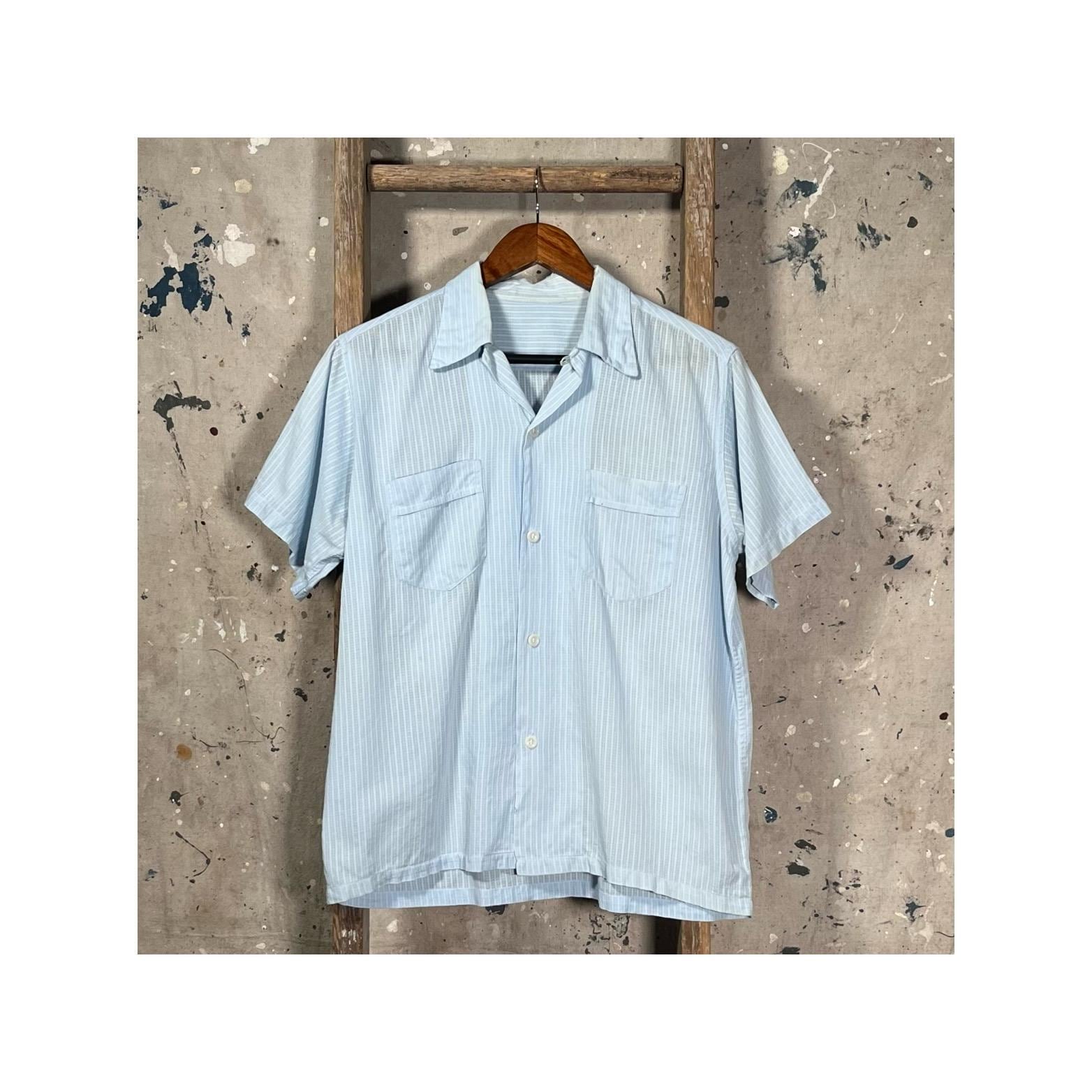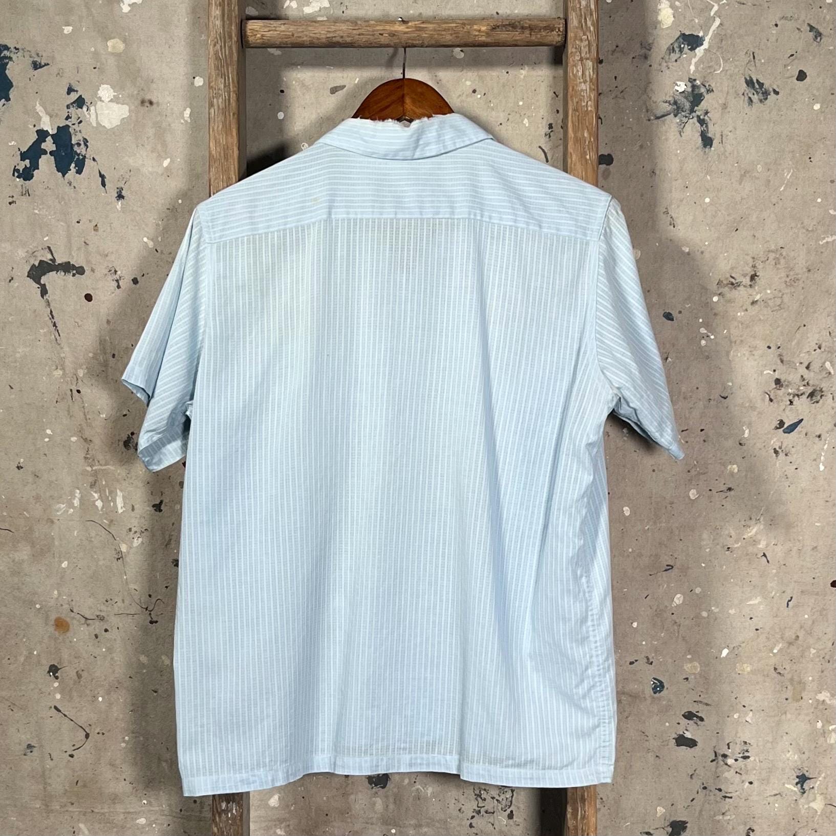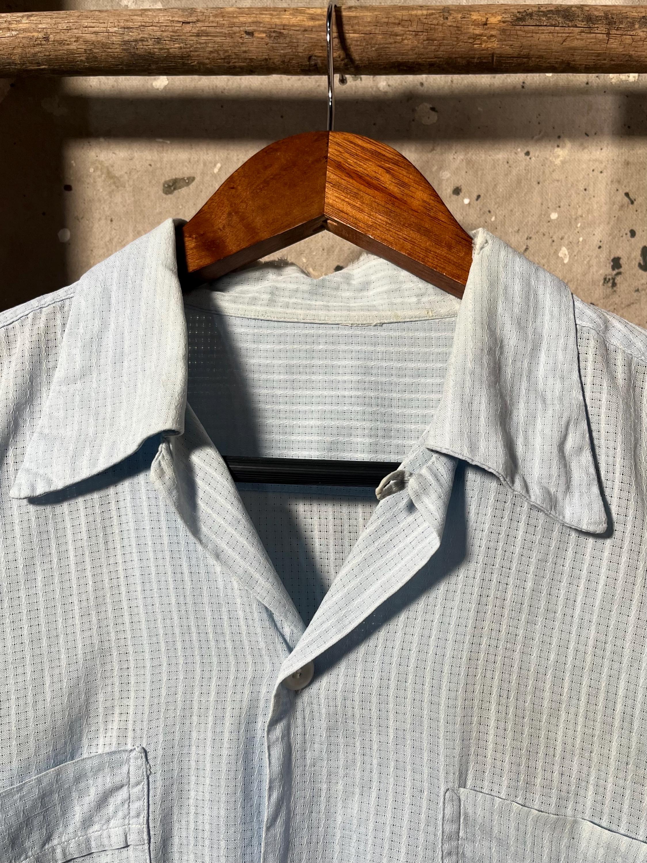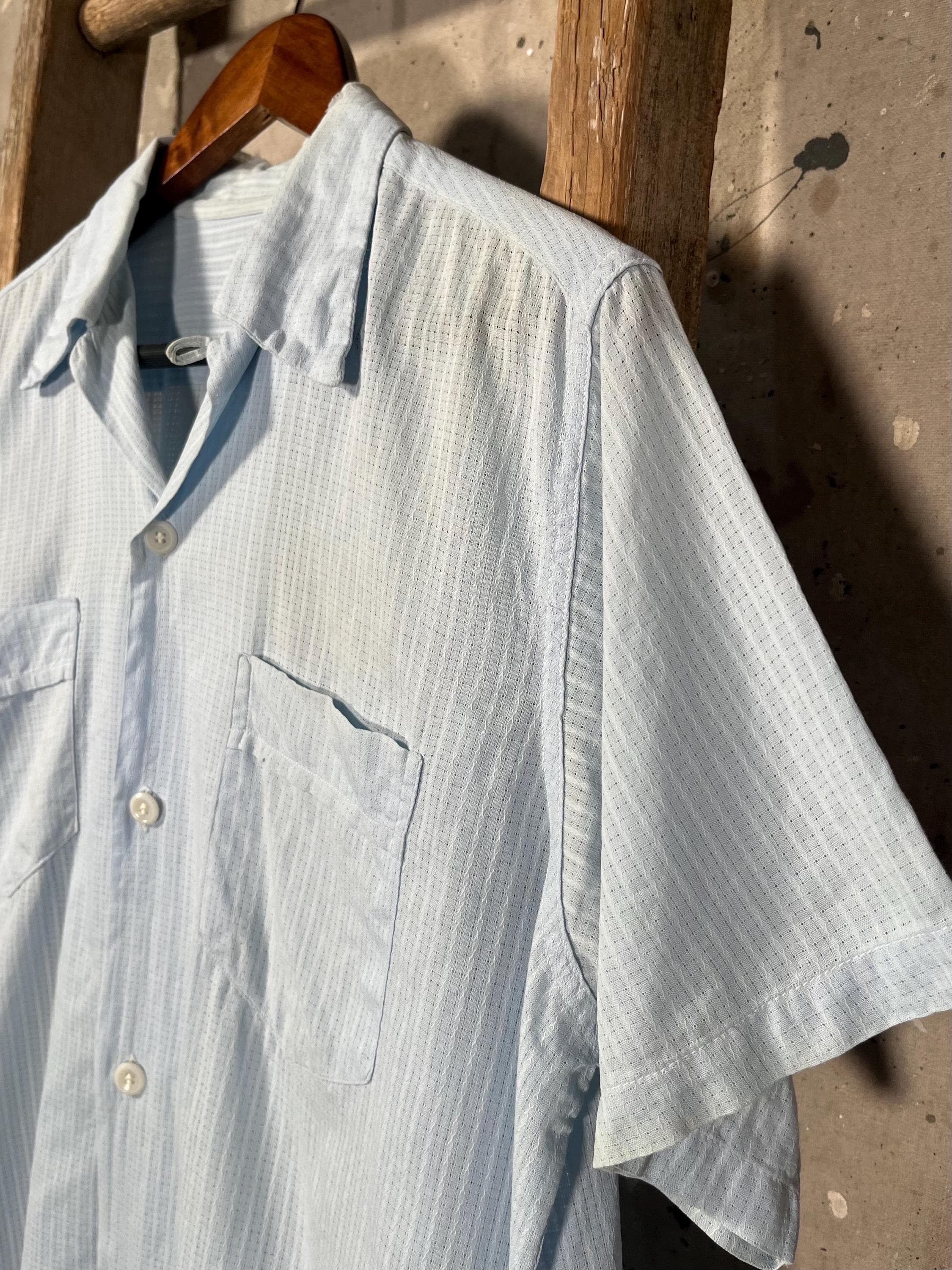 1950s Loop Collar Shirt. Nicely worn , extra light and breezy cotton summer shirt. 2 pocket button down with natural distressing throughout , wear around color. Good vintage condition - please see photos.