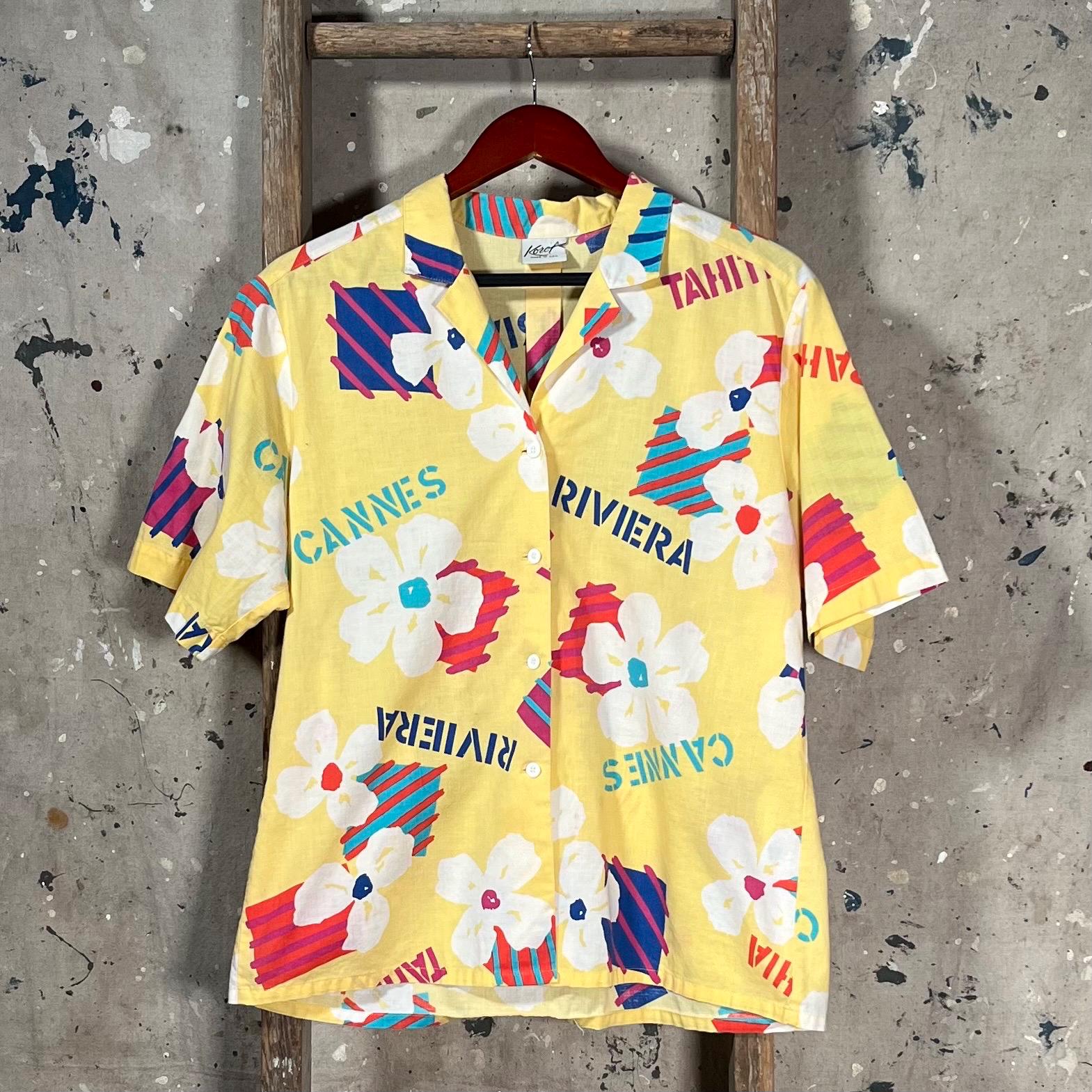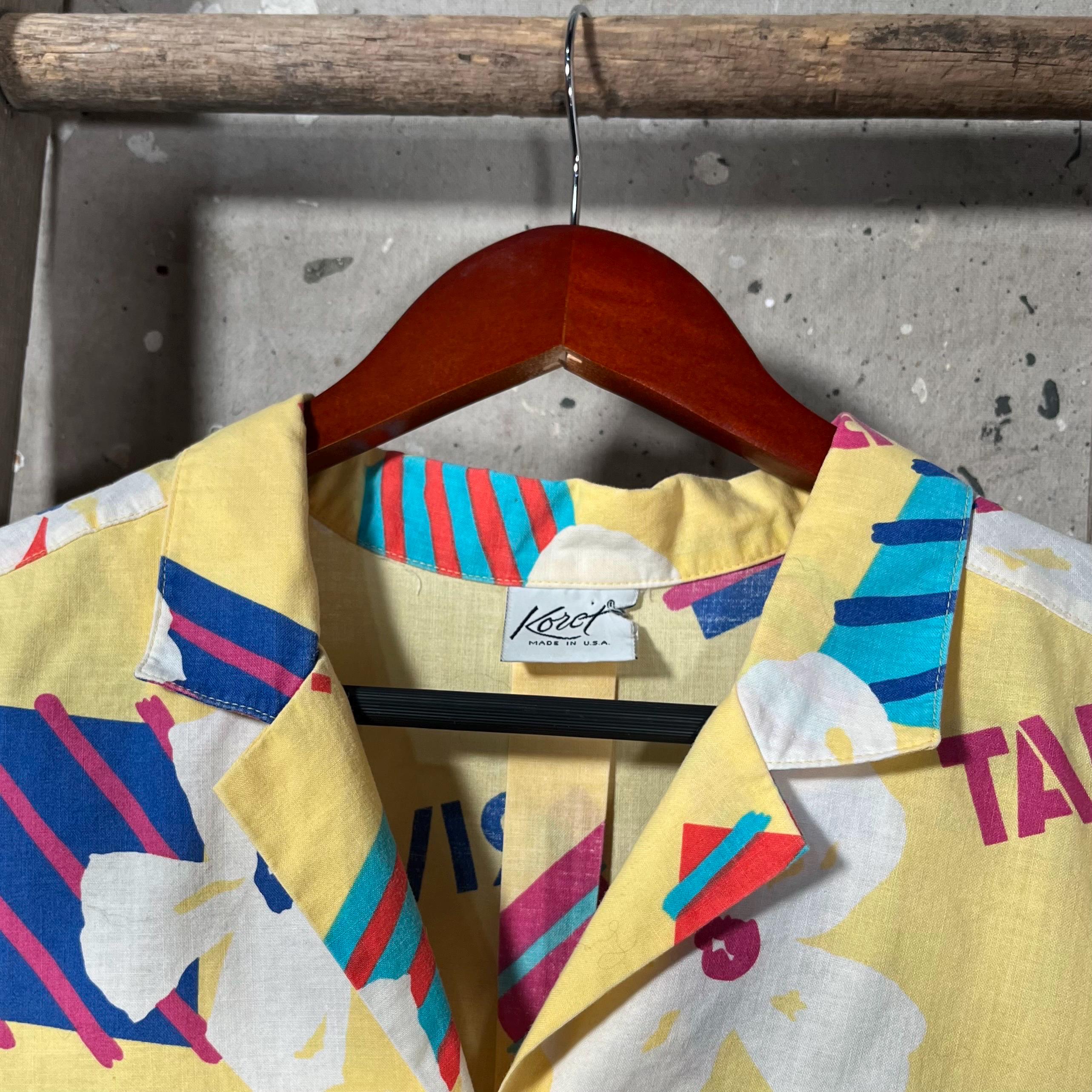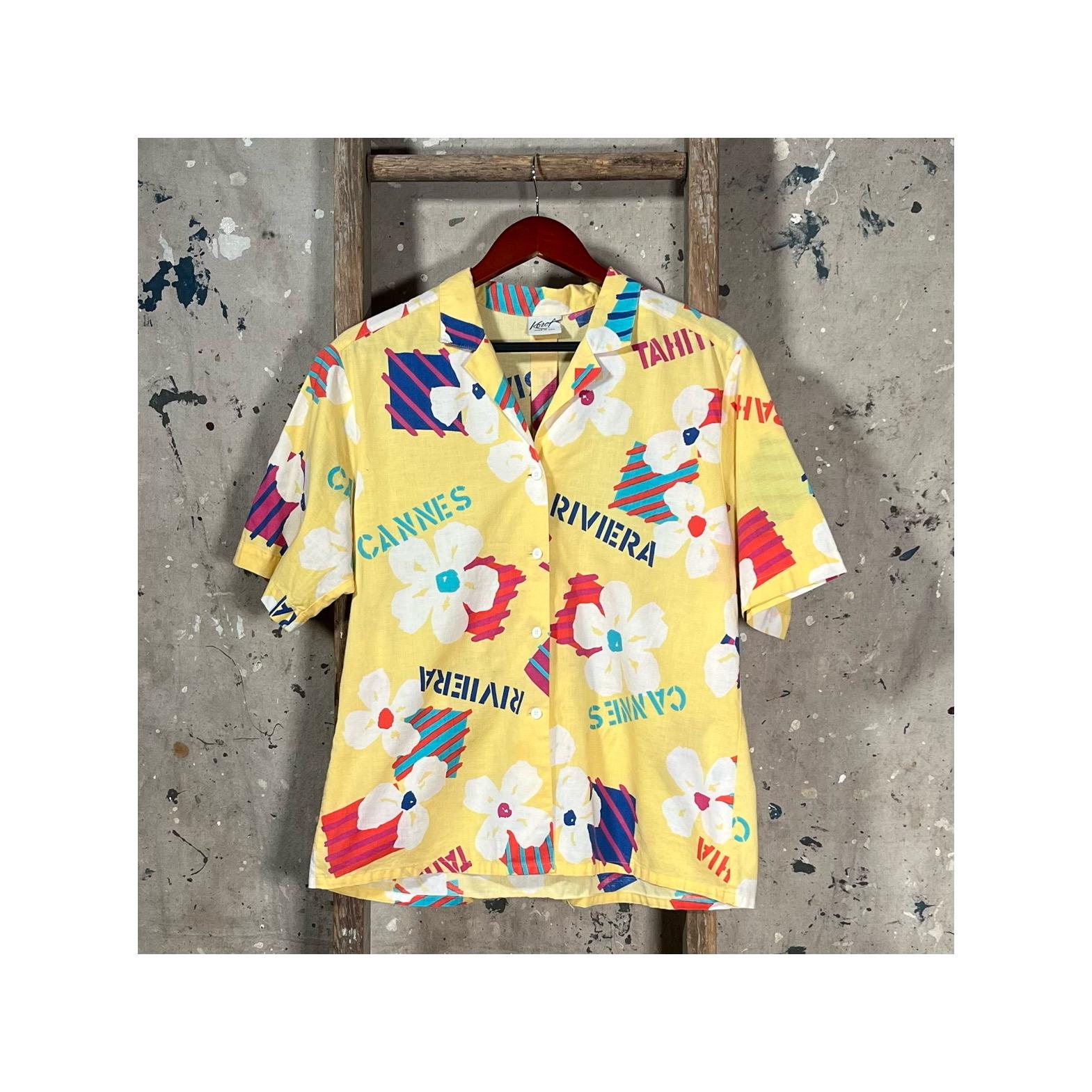 All Cotton 1990s Hawaiian Shirt by Koret. Features funky pattern with frequently visited islands such as Riviera, Cannes, Ibiza & St. Tropez. Standout colors , good vintage condition, no damage or discoloration - see photos.