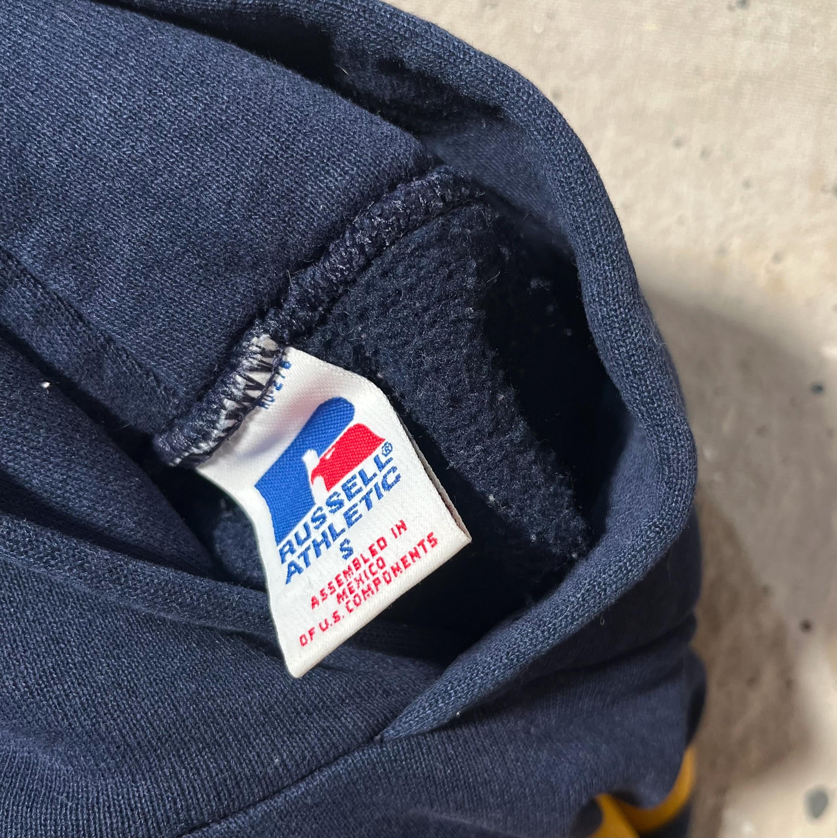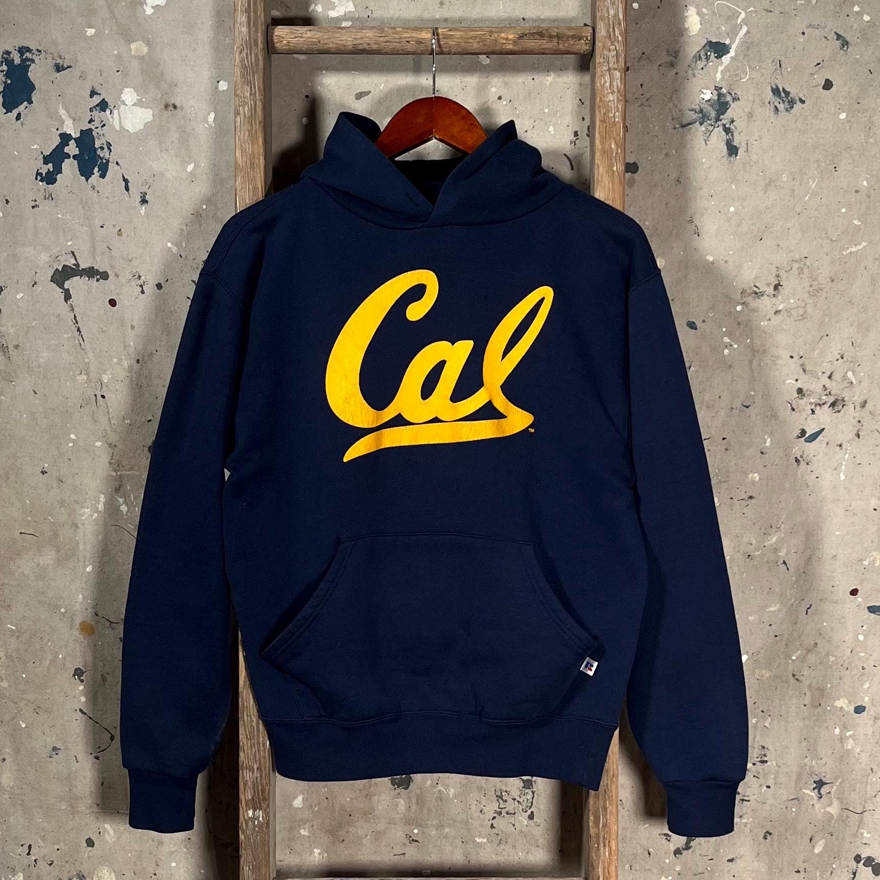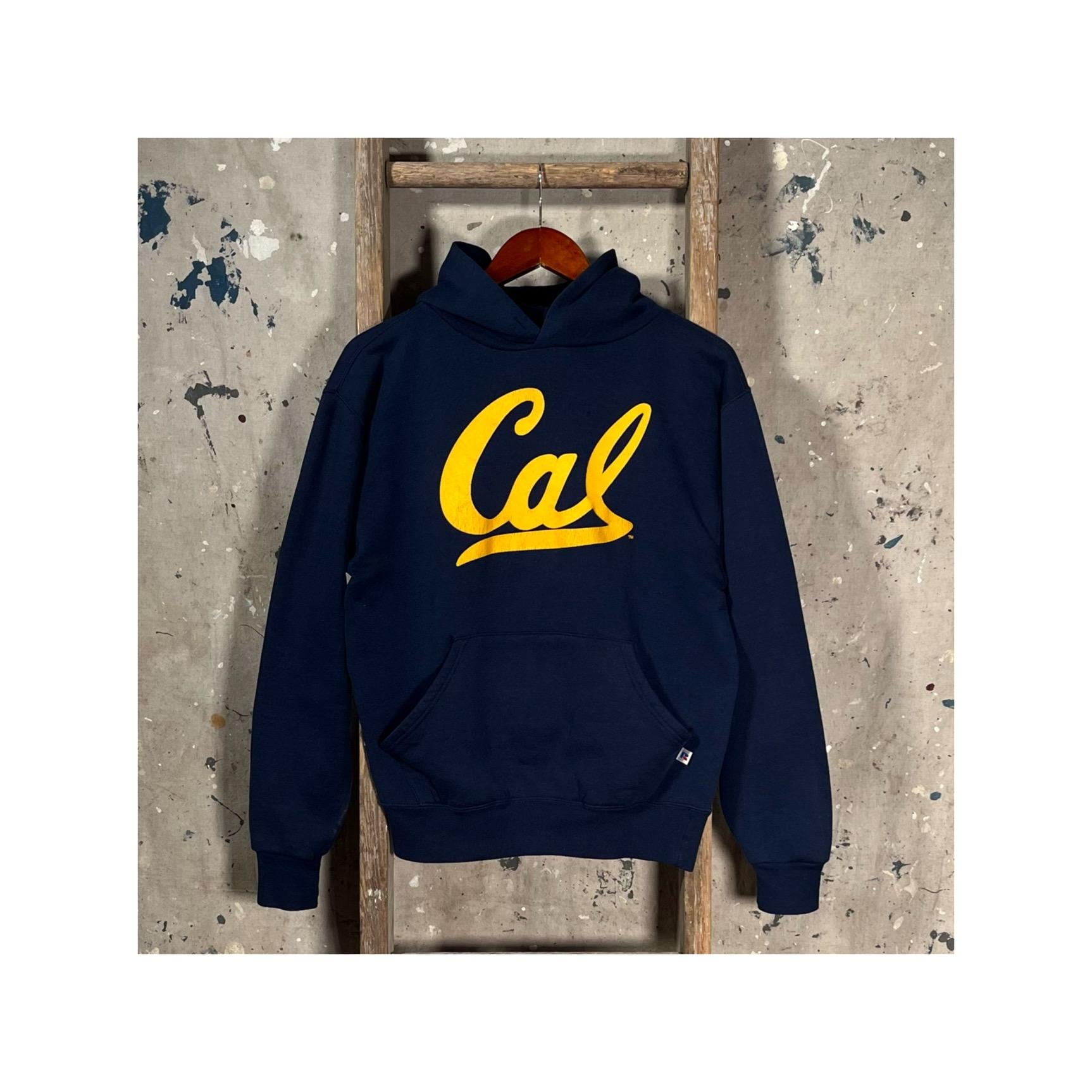 1990s University of California sweatshirt by Russell. Classic boxy fit , cotton blend hoodie . Good condition, busted seem on pocket.