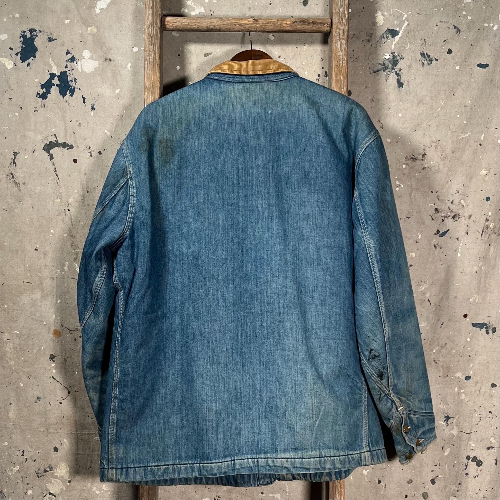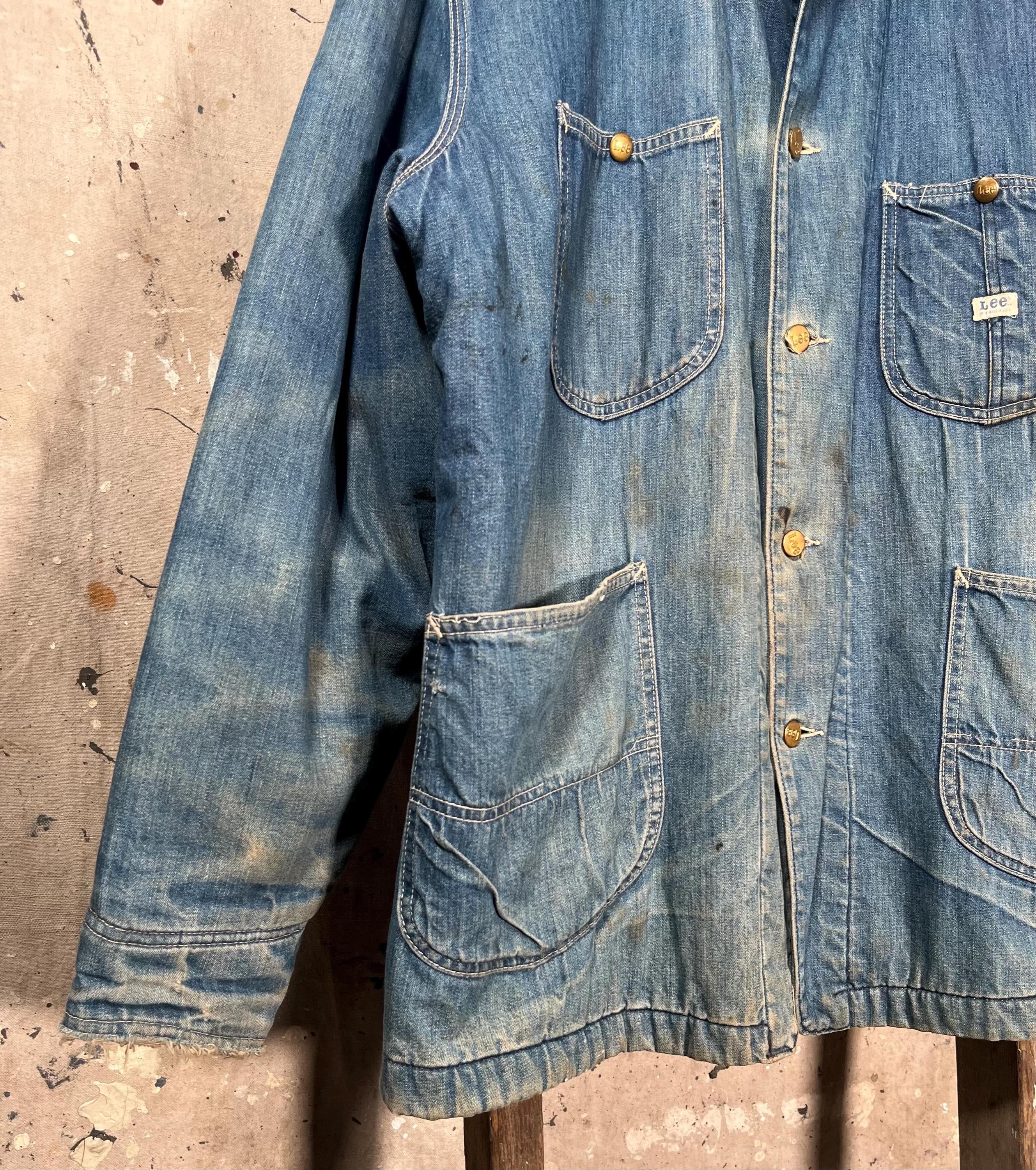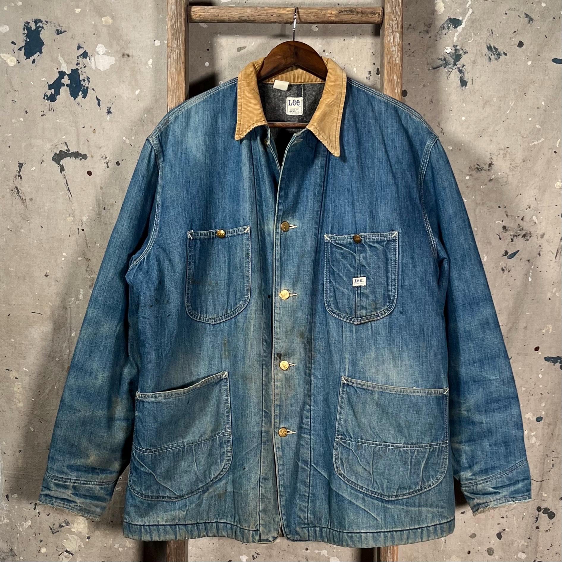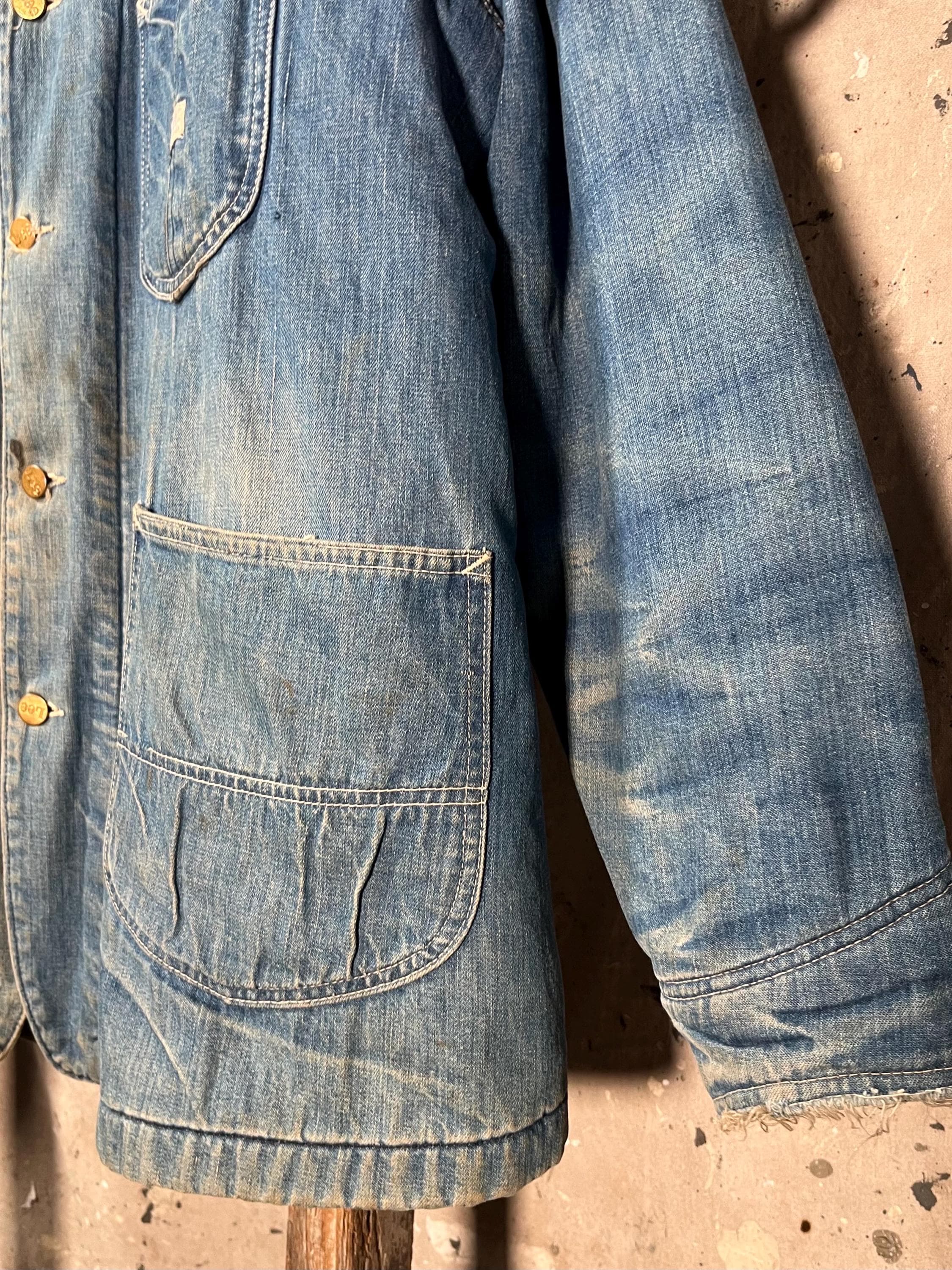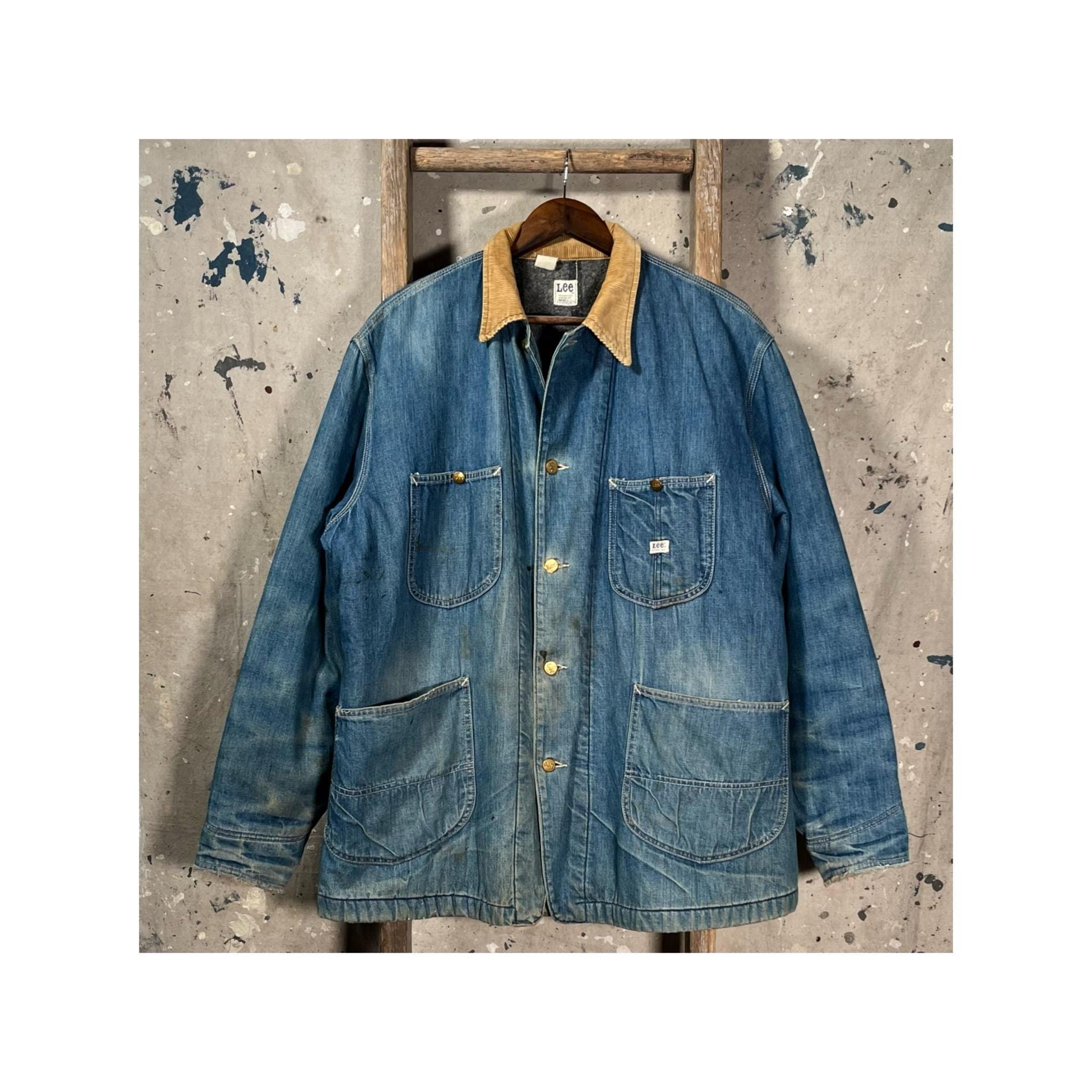 1970s Blanket Lined Lee chore Jacket. Sanforized denim, 4 pocket , full button closure. True large , big size. Natural distressing throughout, see photos. Good condition.