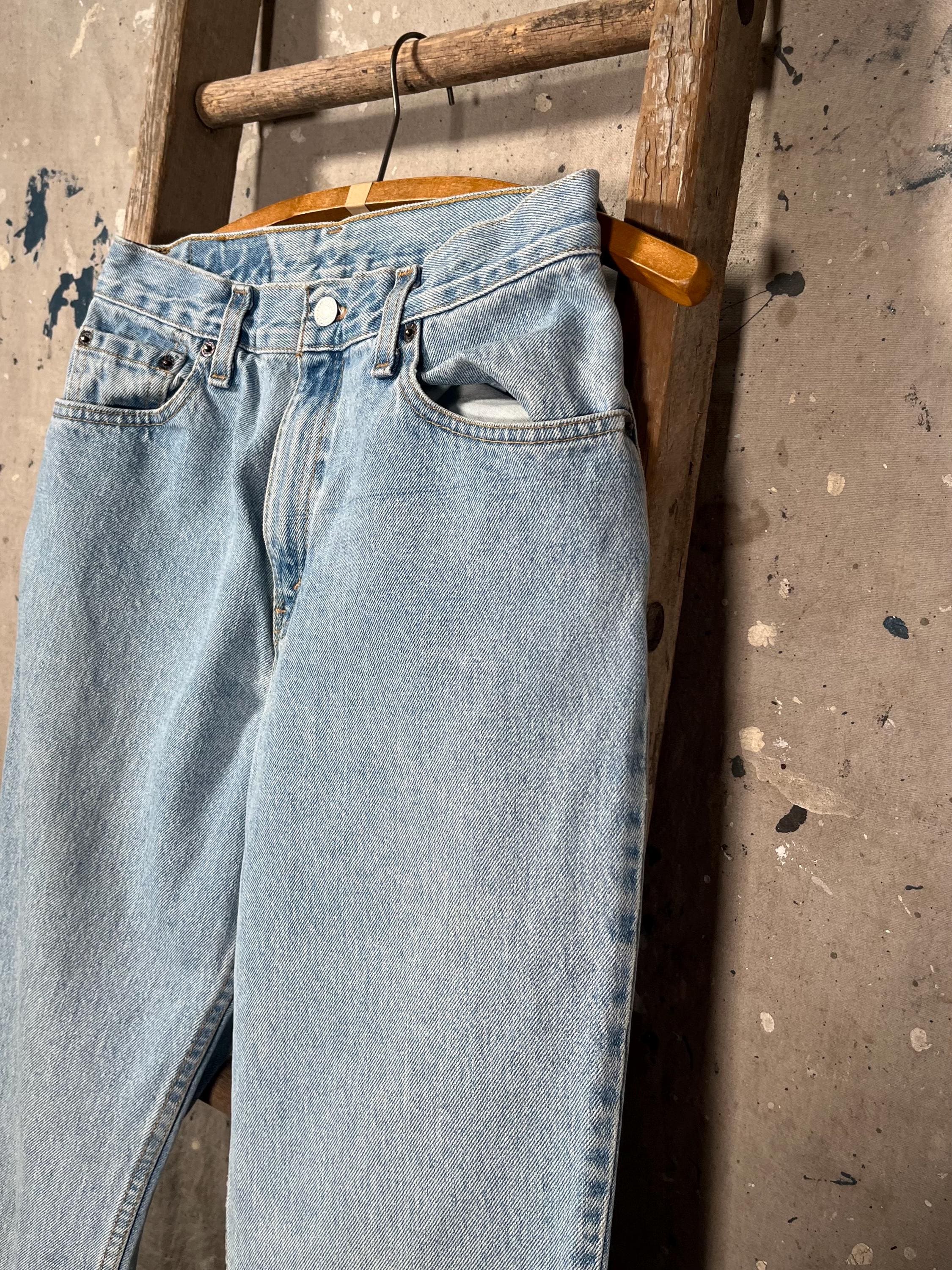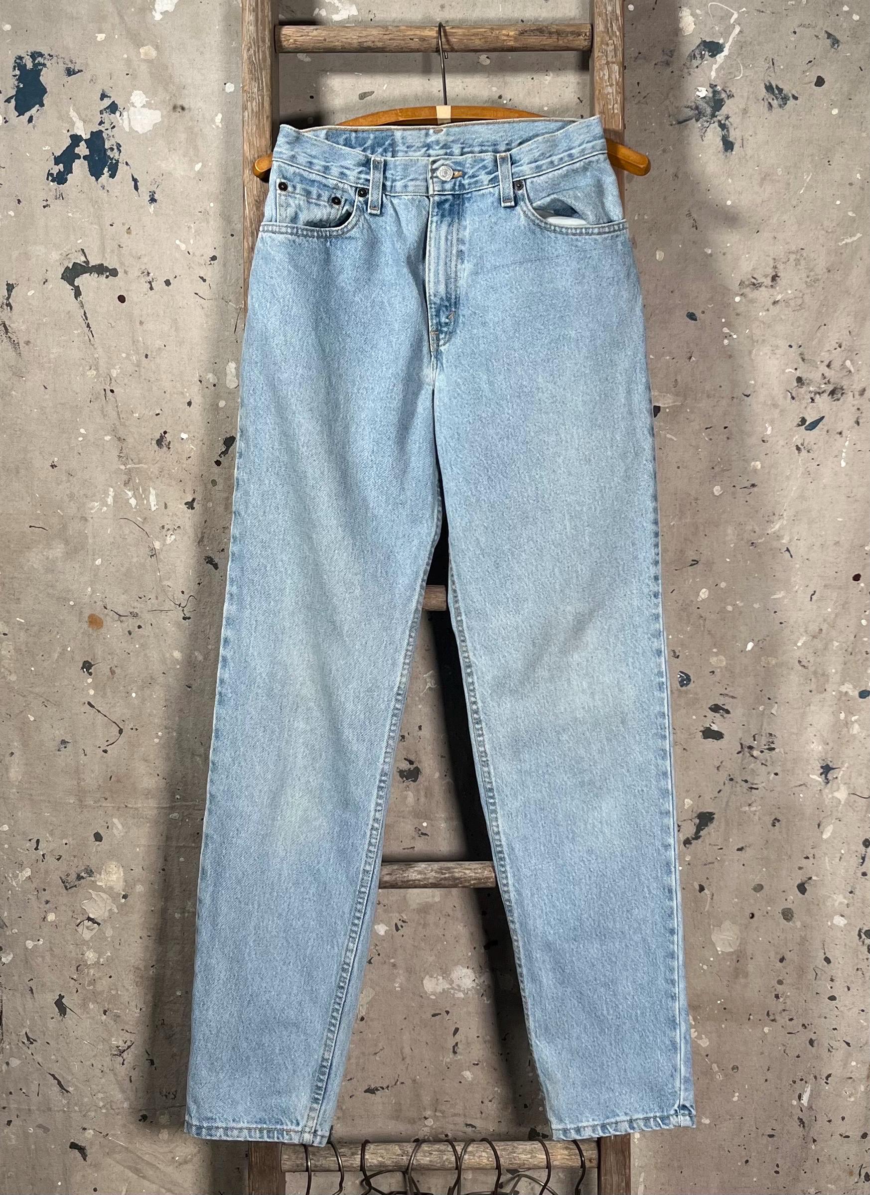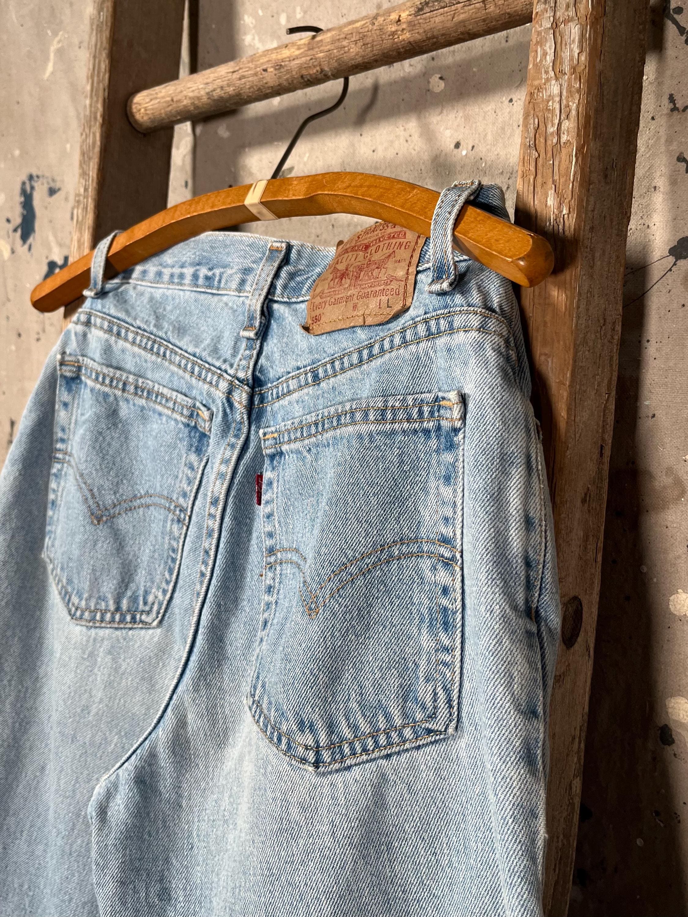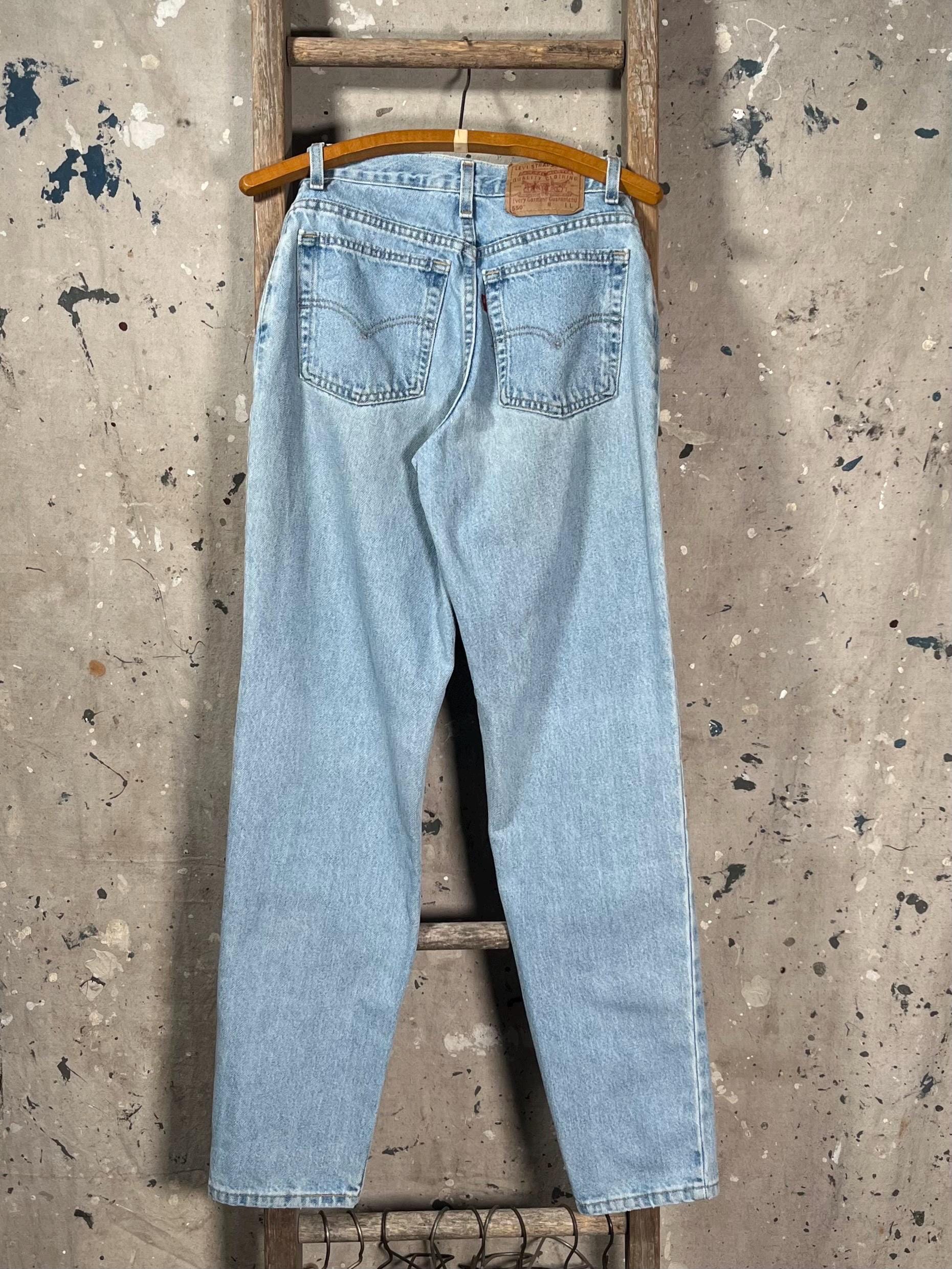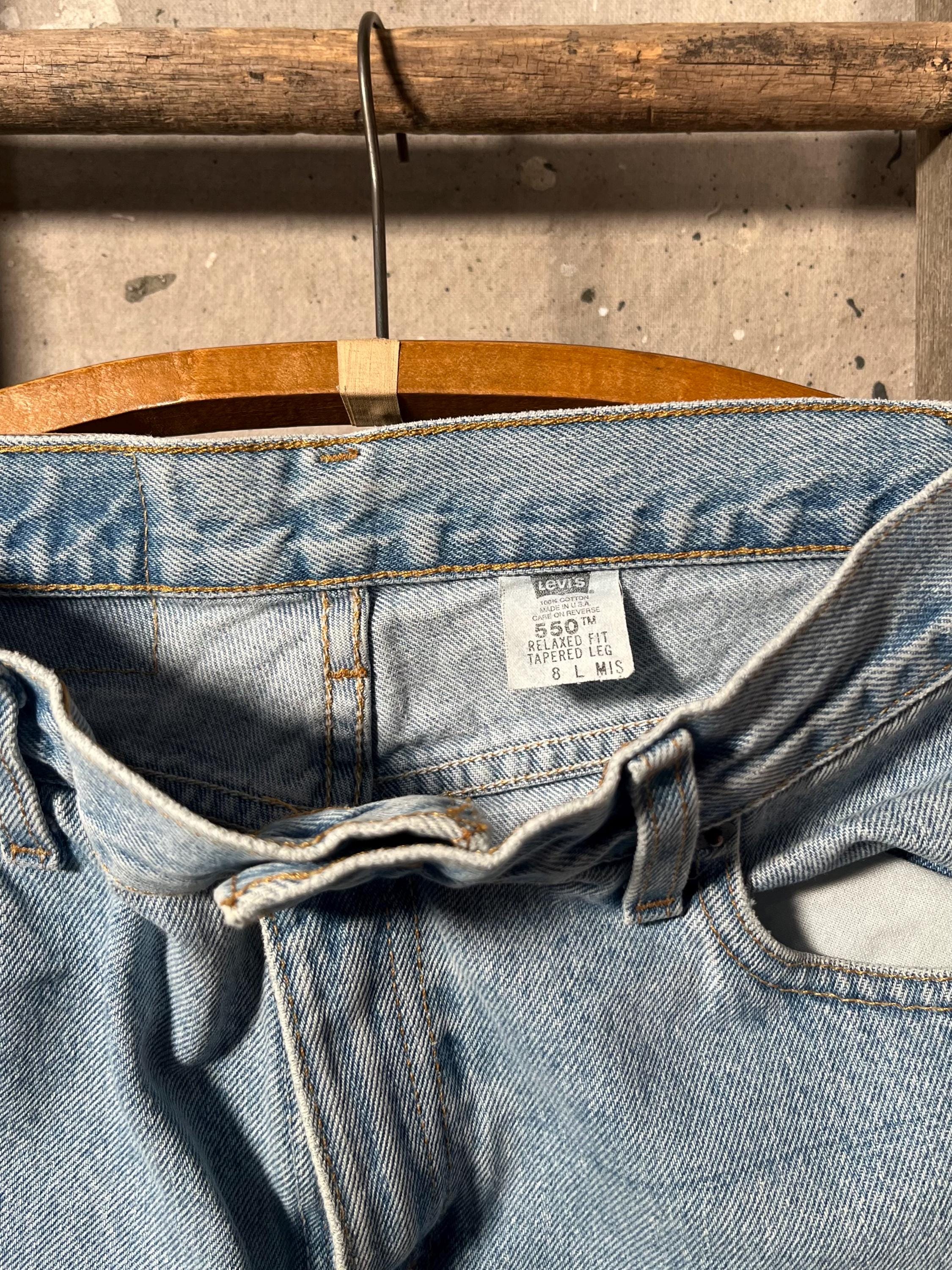 Medium / light wash 1980s Levi's 550 denim jeans. Petite , 26 waist relaxed tapperd fit. See photos . Good condition.