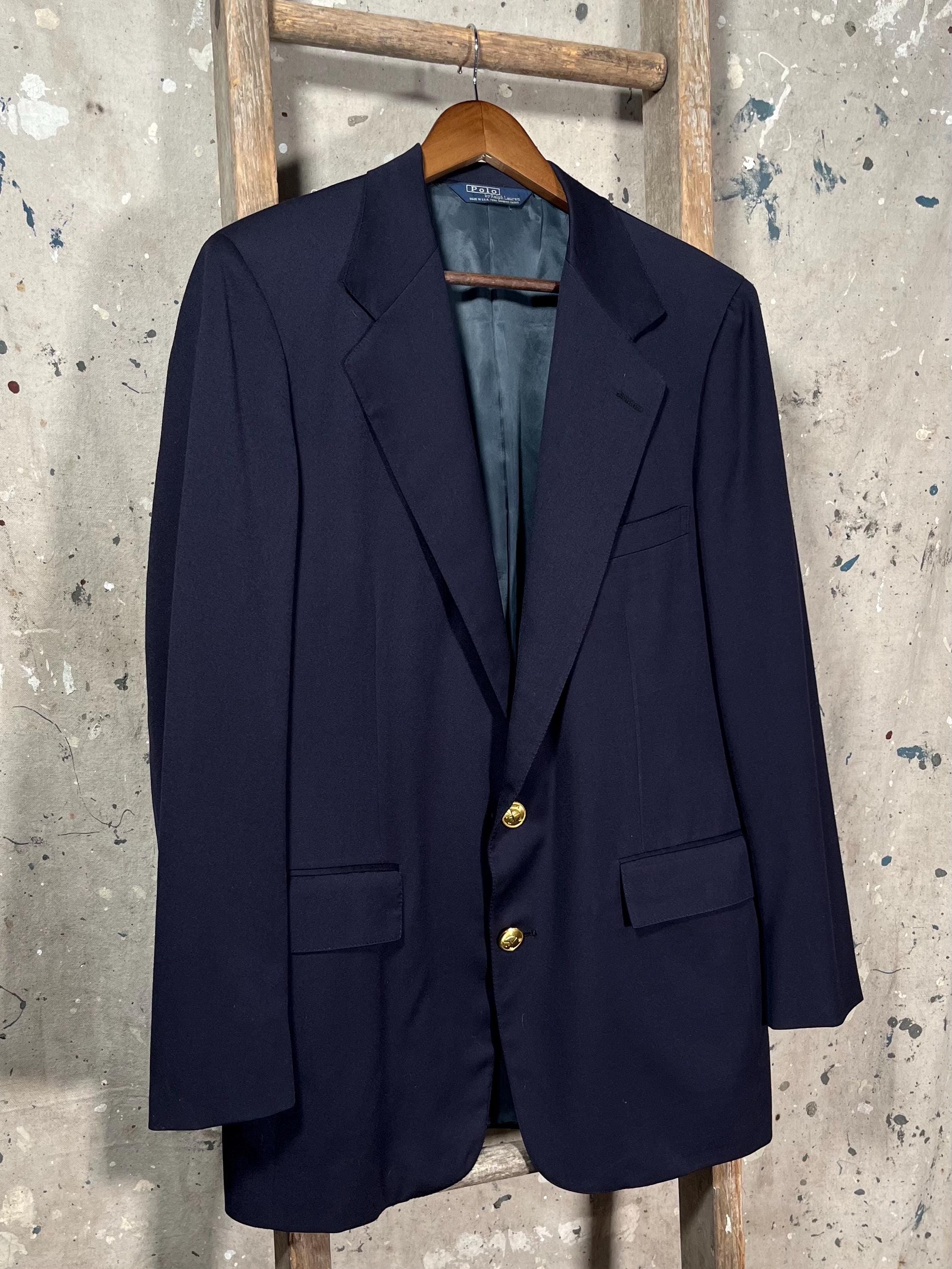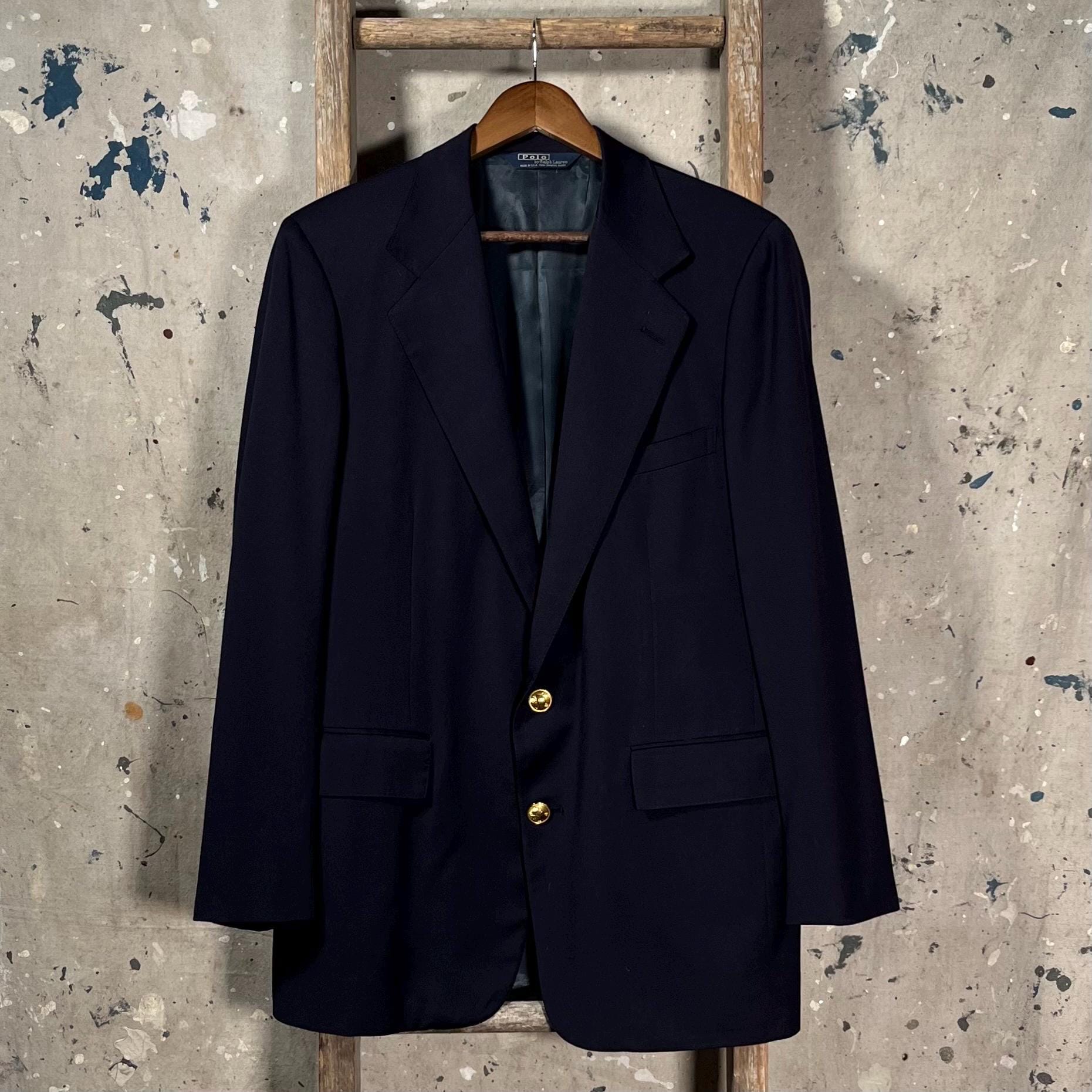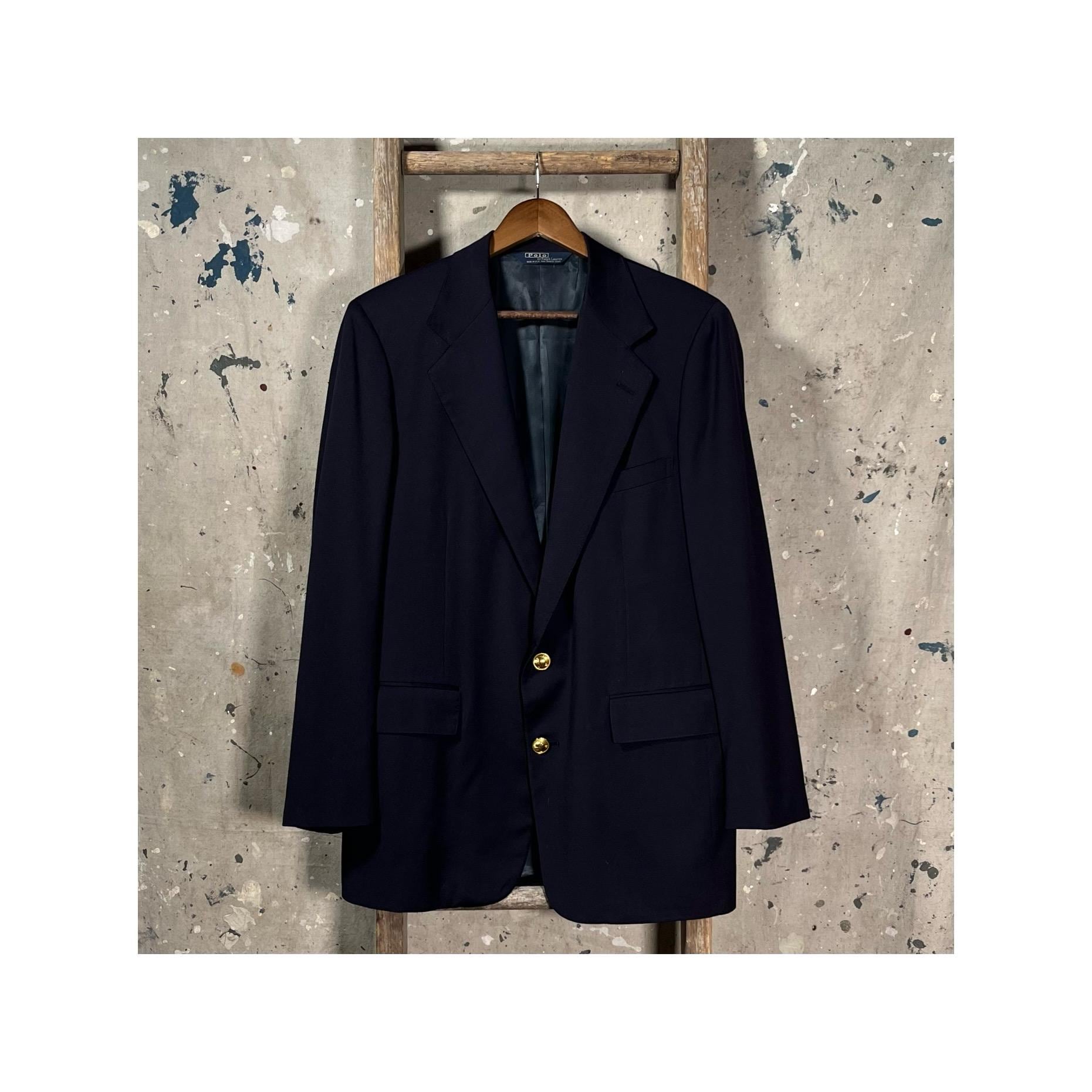 Polo Ralph Lauren sport coat . Single breasted all wool blazer with gold buttons . Fully lined , flap pockets and vented back . Size 42 . Made in USA . Good condition - see photos .