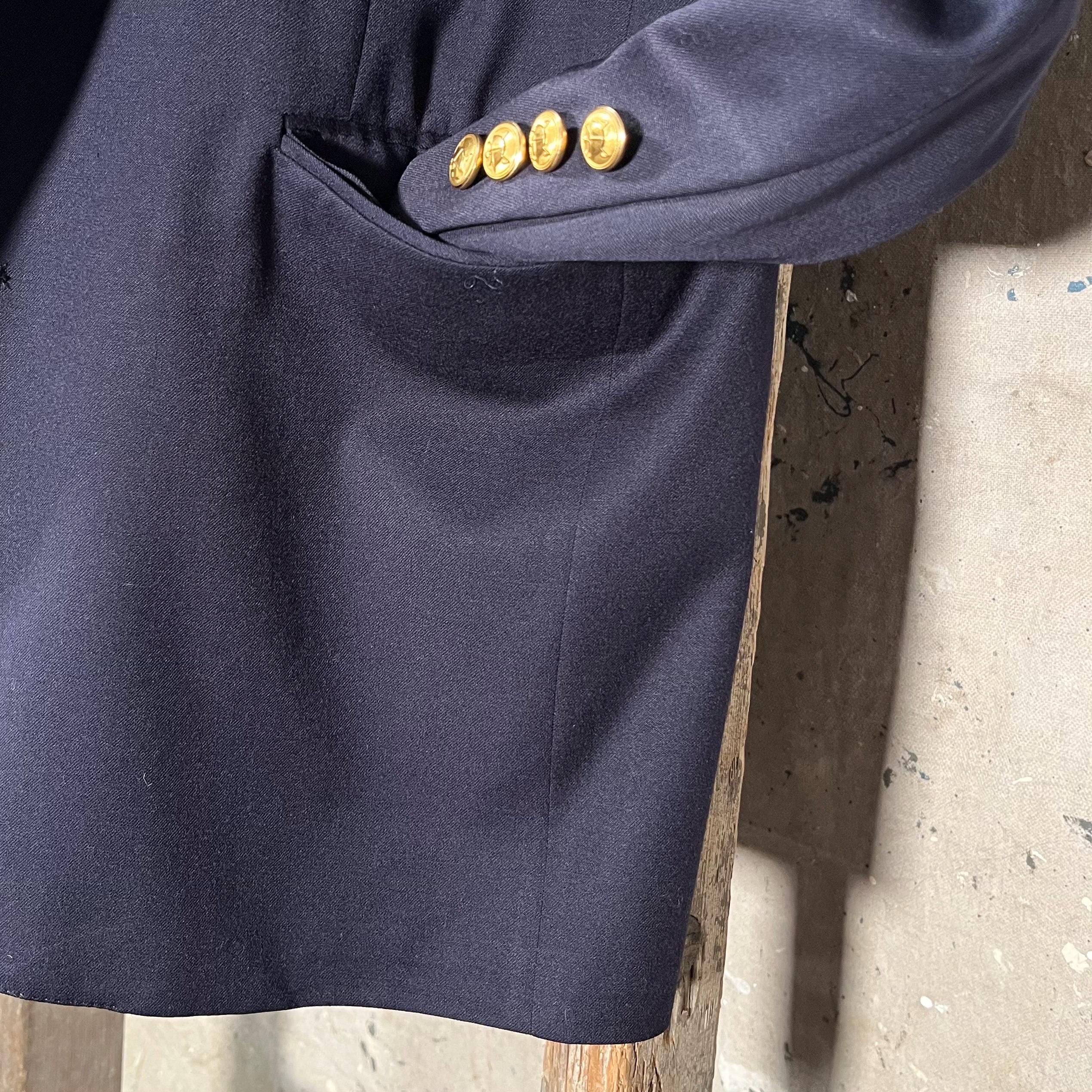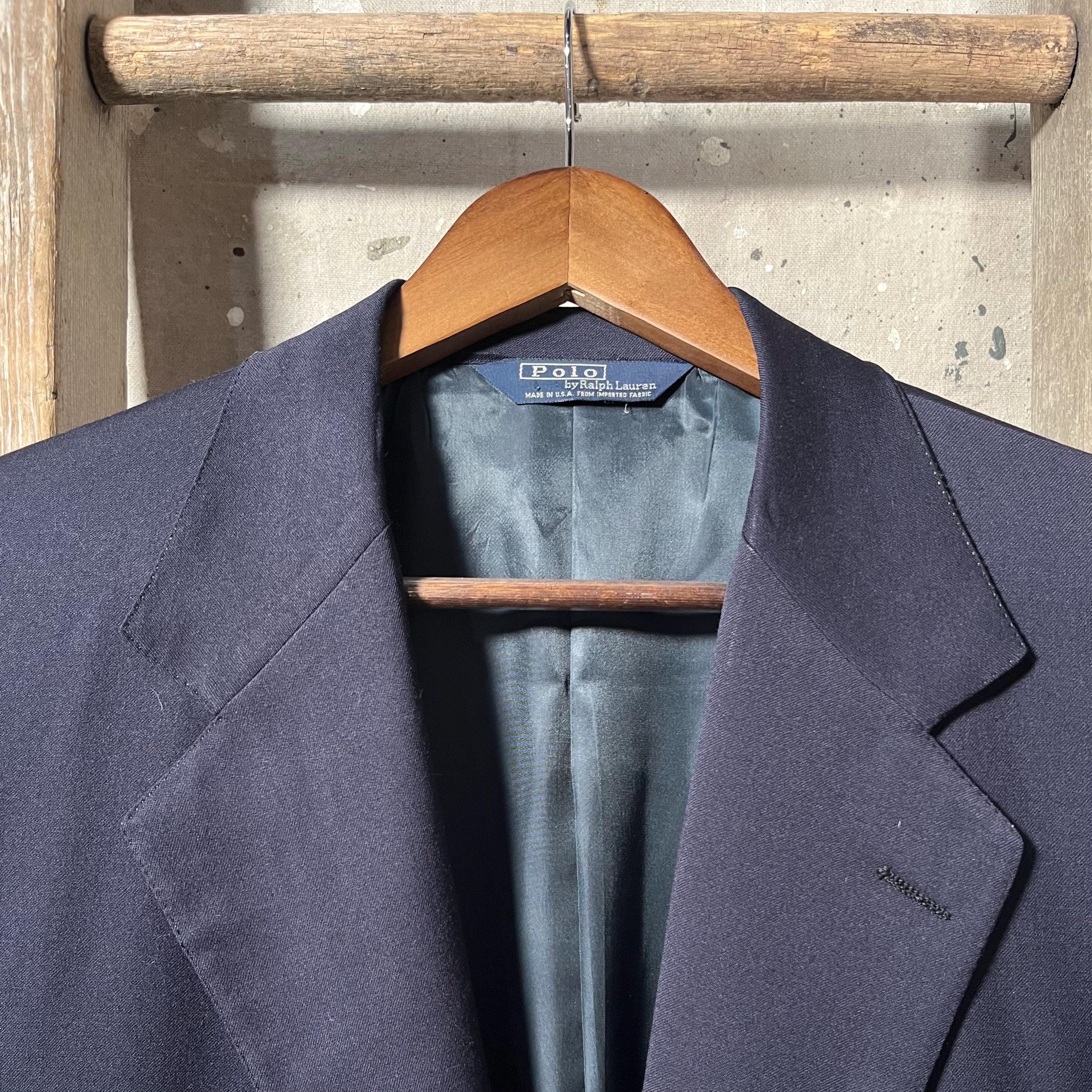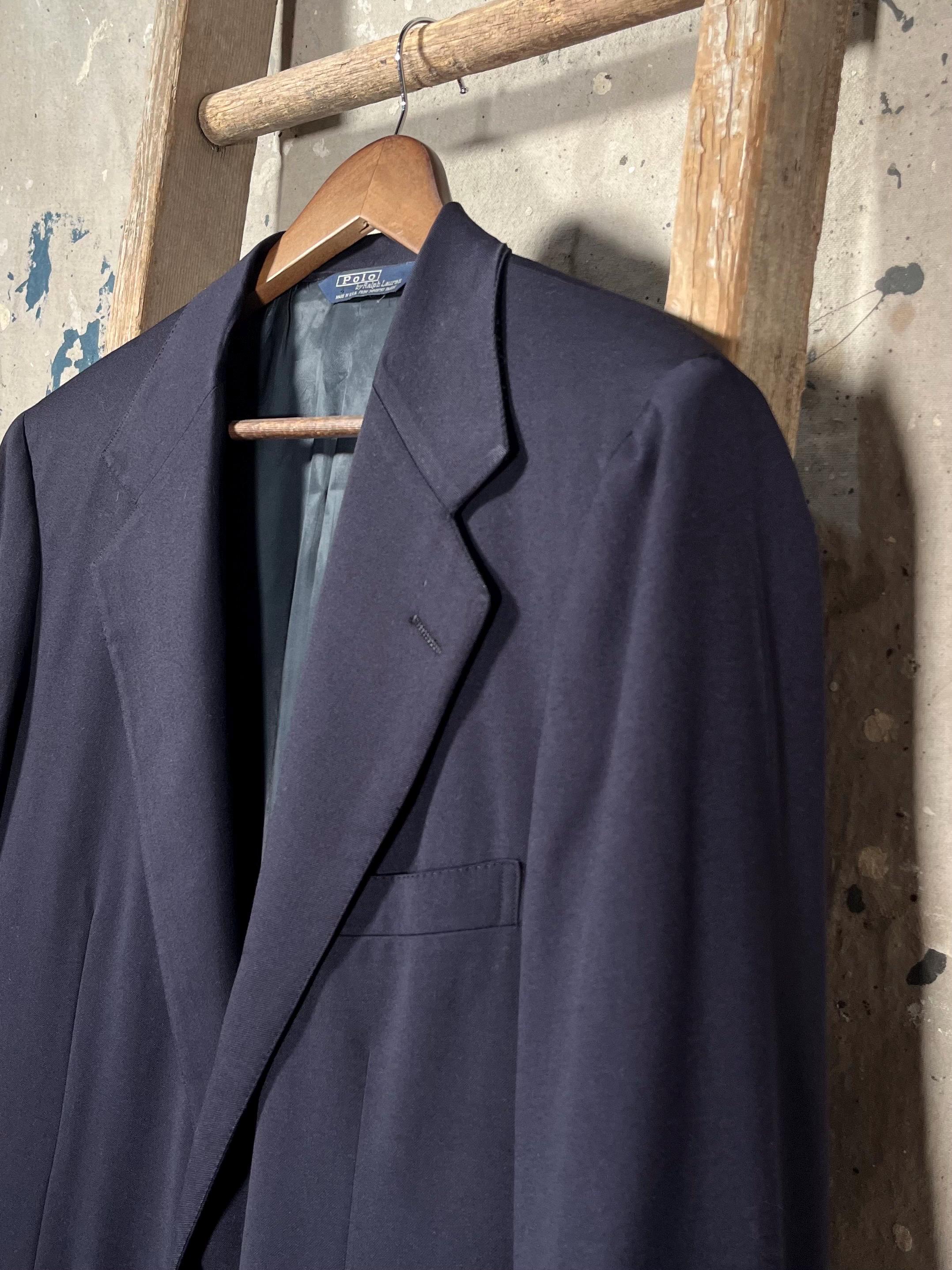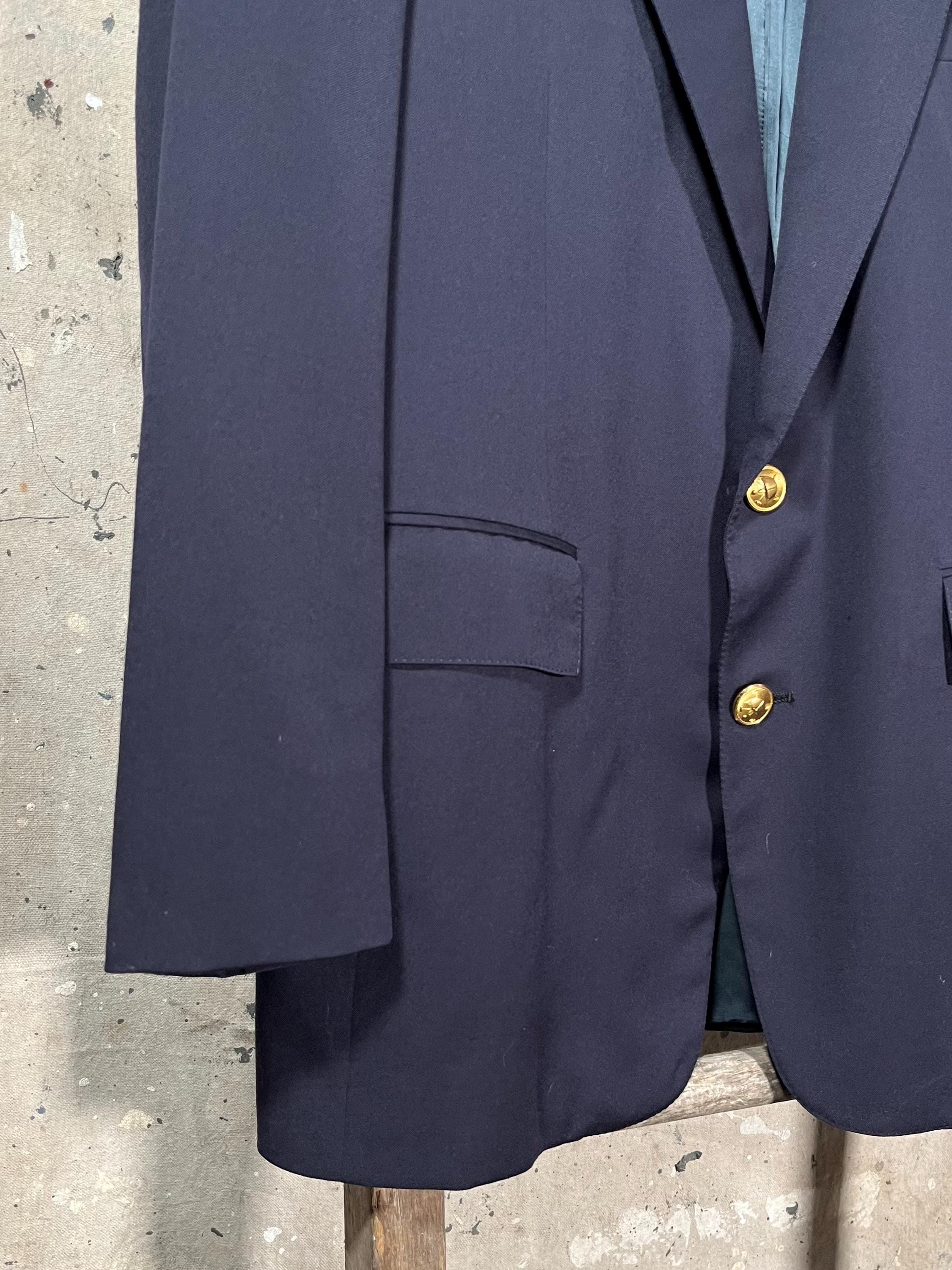 Polo Ralph Lauren sport coat . Single breasted all wool blazer with gold buttons . Fully lined , flap pockets and vented back . Size 42 . Made in USA . Good condition - see photos .