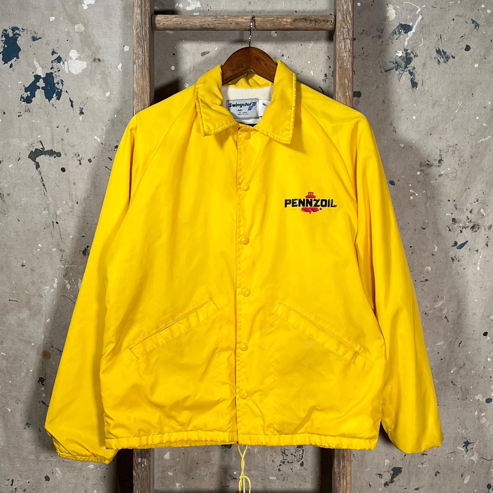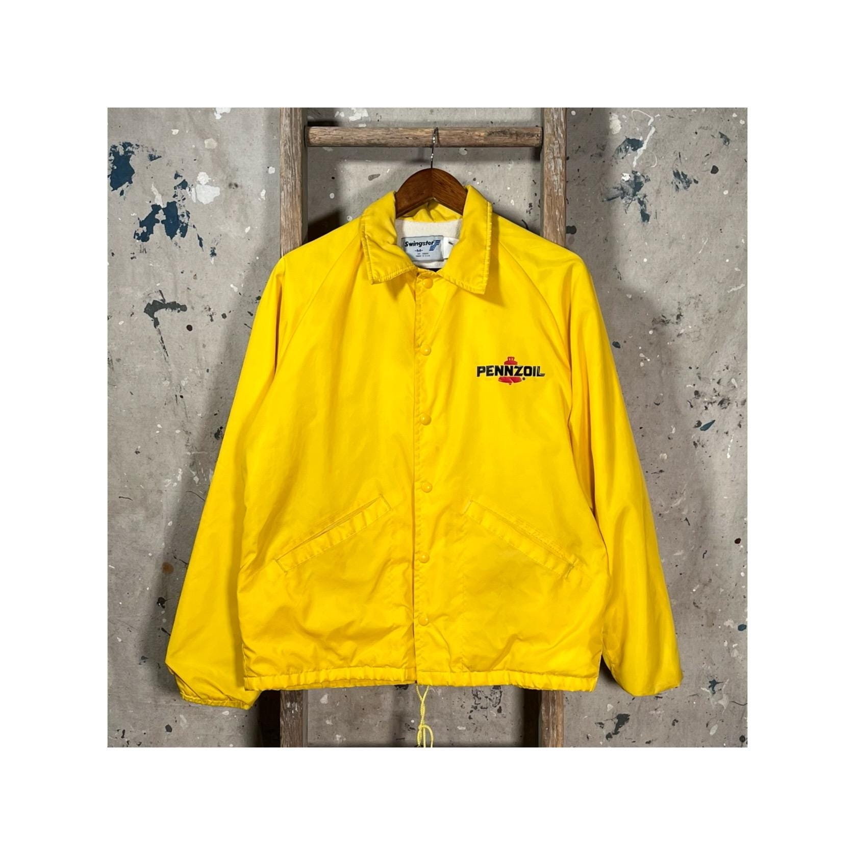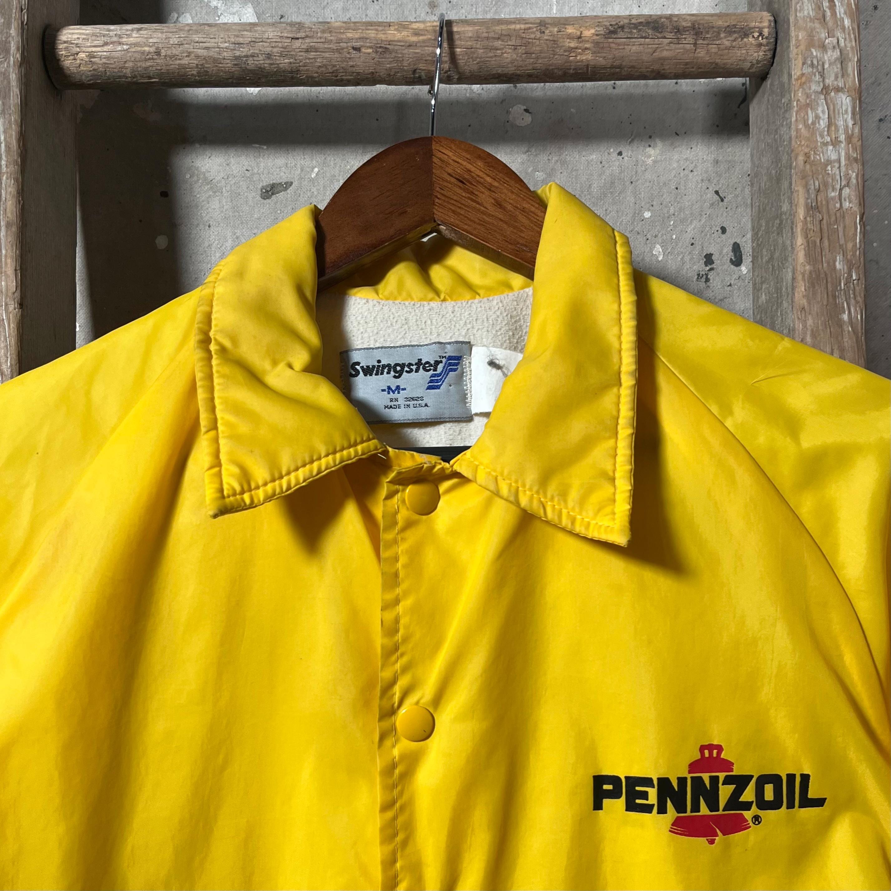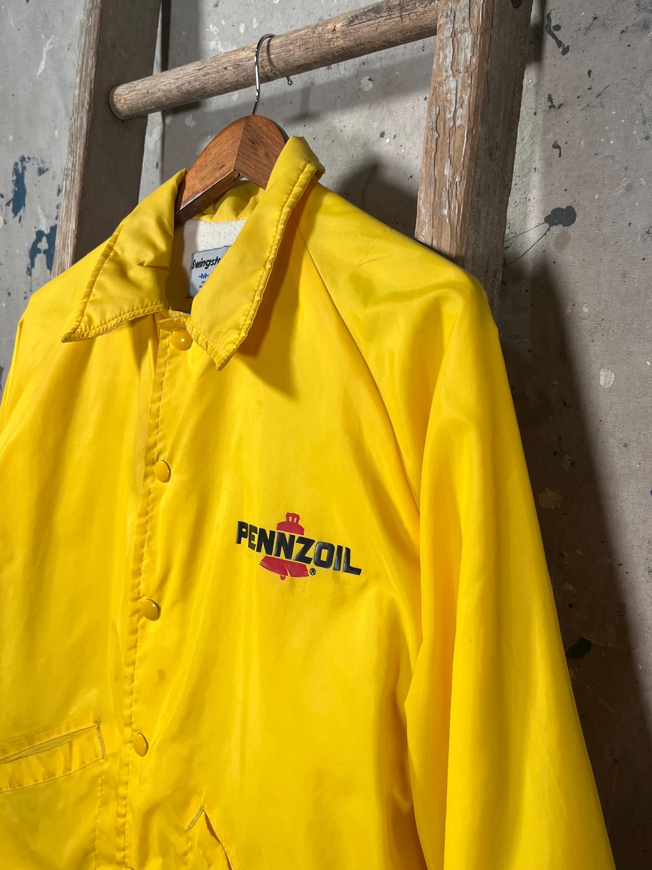 1980s Penzoil 'Coaches Jacket' by Swingster. Light windbreaker with lining , features Penzoil logo at chest with full button closure and drawstring waist. Made in USA. Good vintage condition, no damage - see photos.