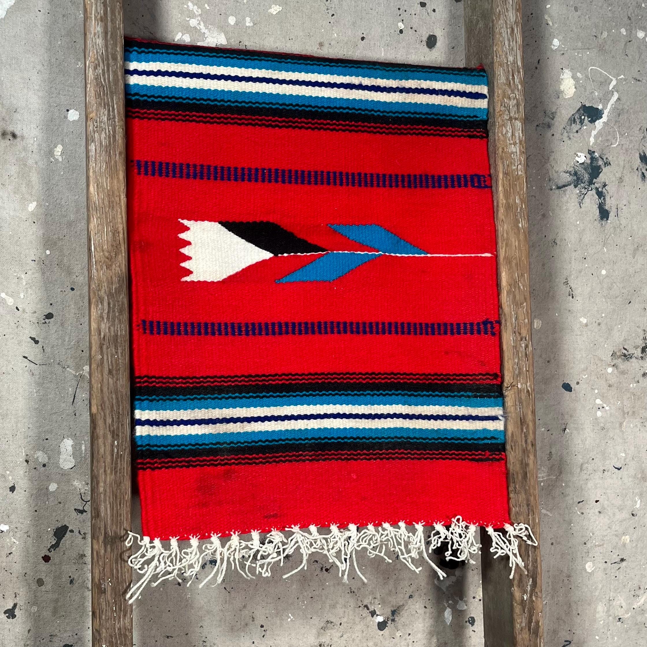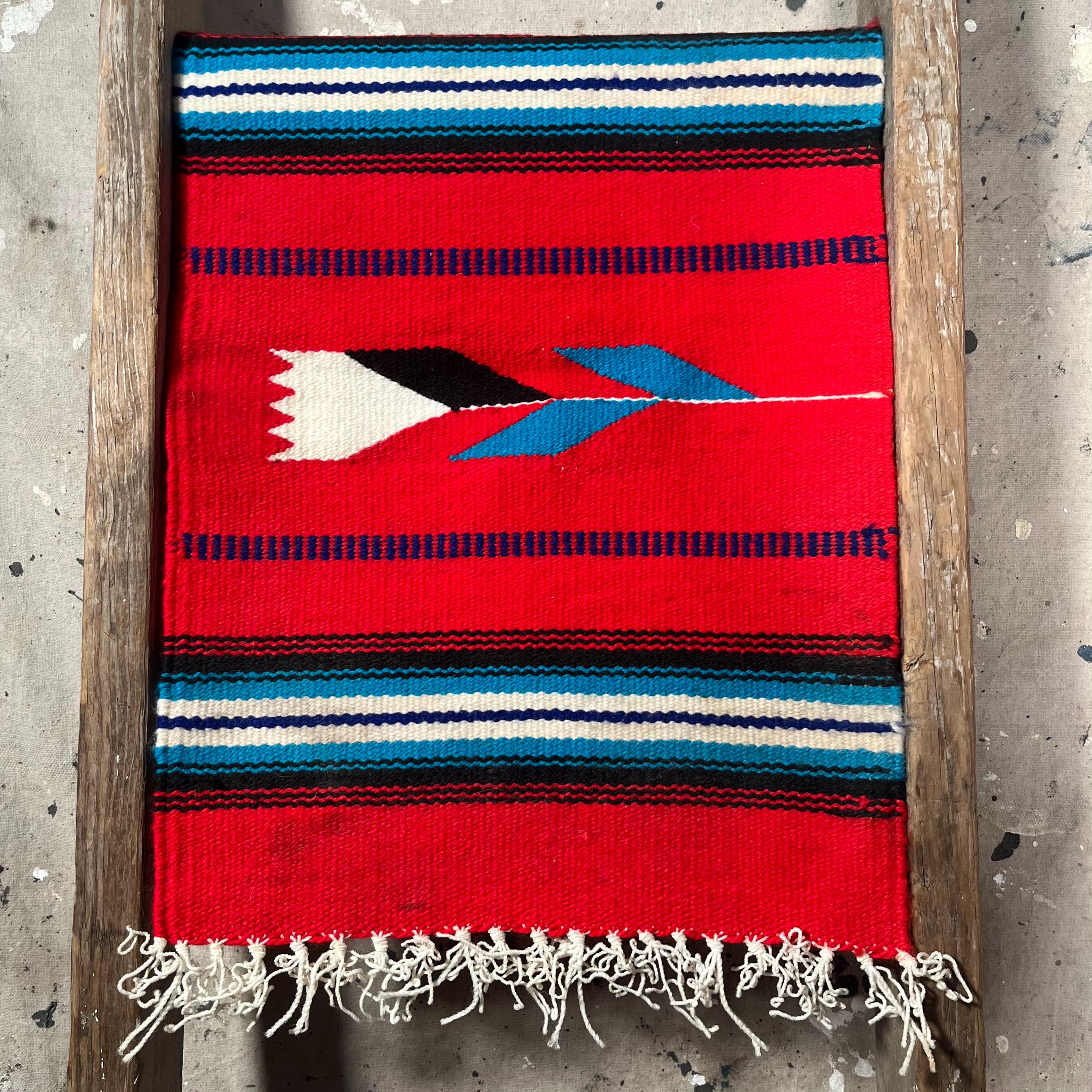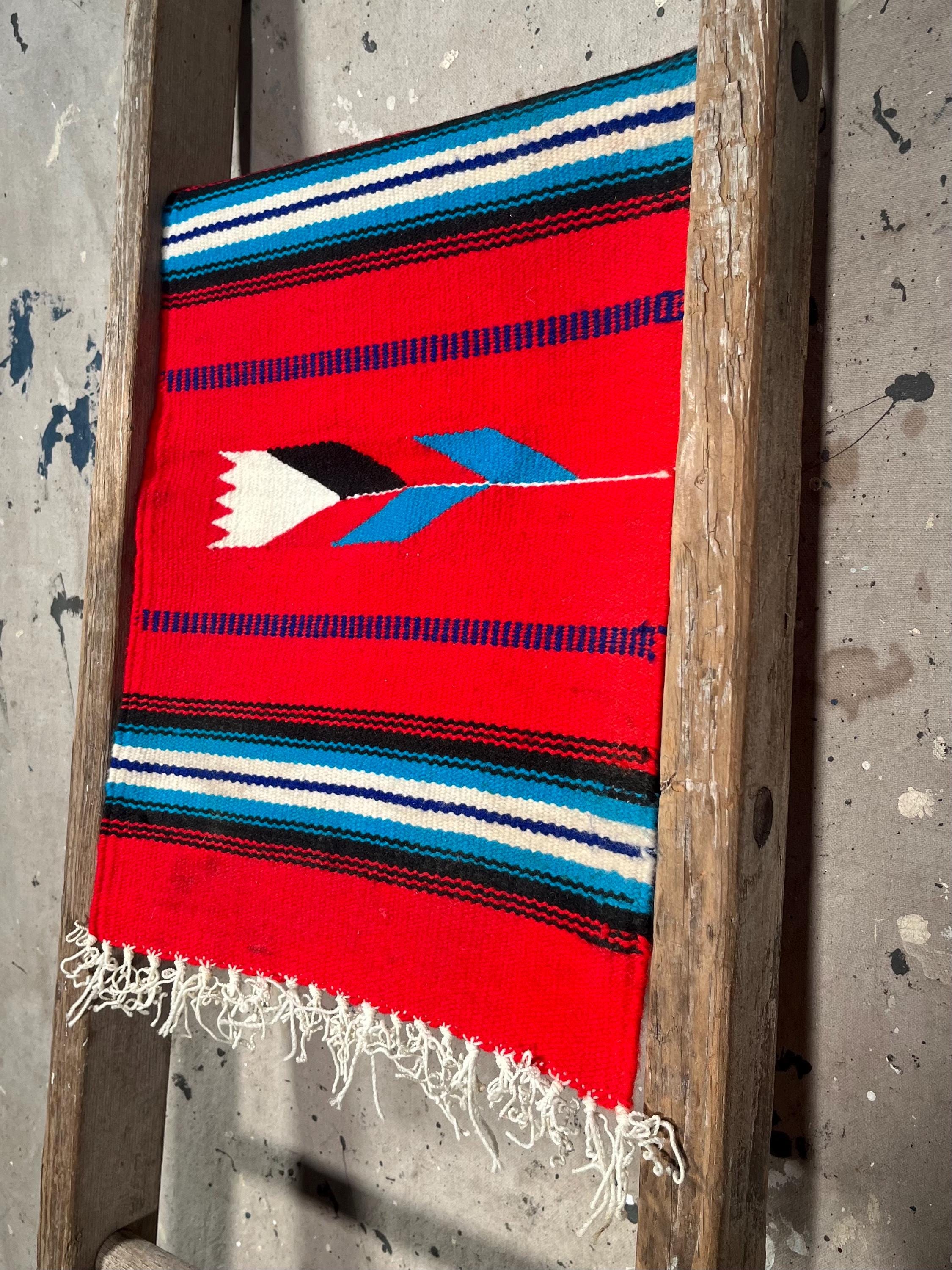 Authentic hand woven '70s South Western runner. Square, vibrant colors , beautiful detail with flower design. Good condition.