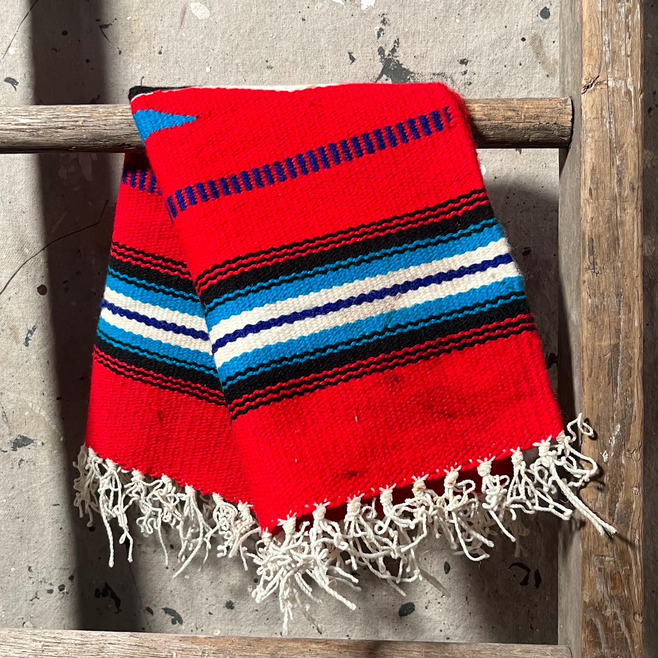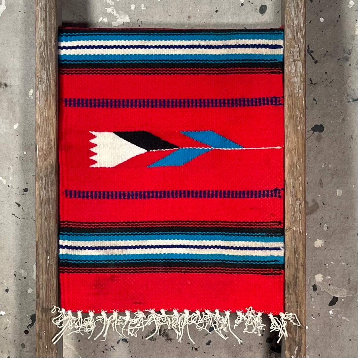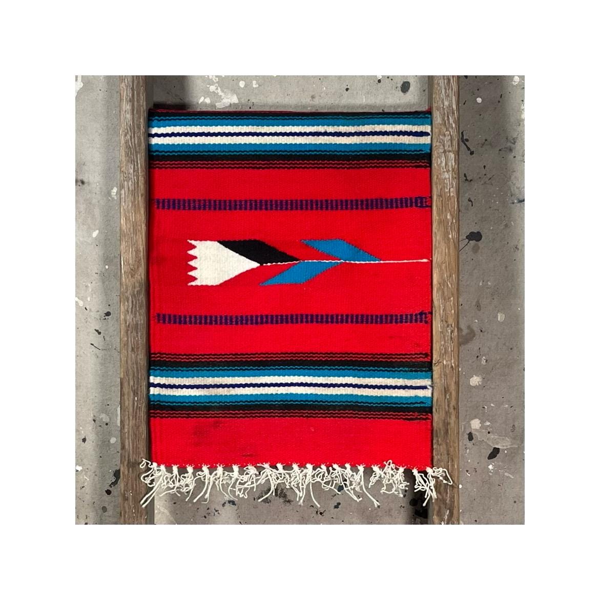 Authentic hand woven '70s South Western runner. Square, vibrant colors , beautiful detail with flower design. Good condition.