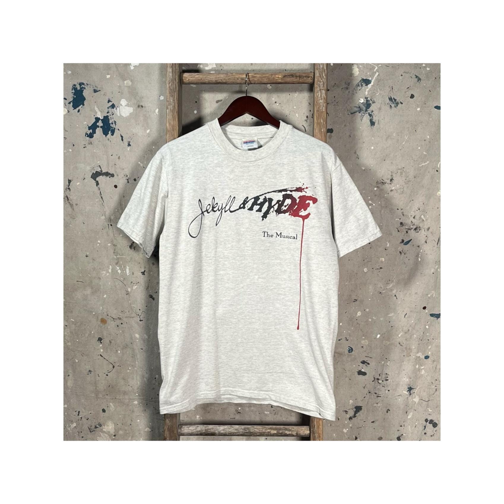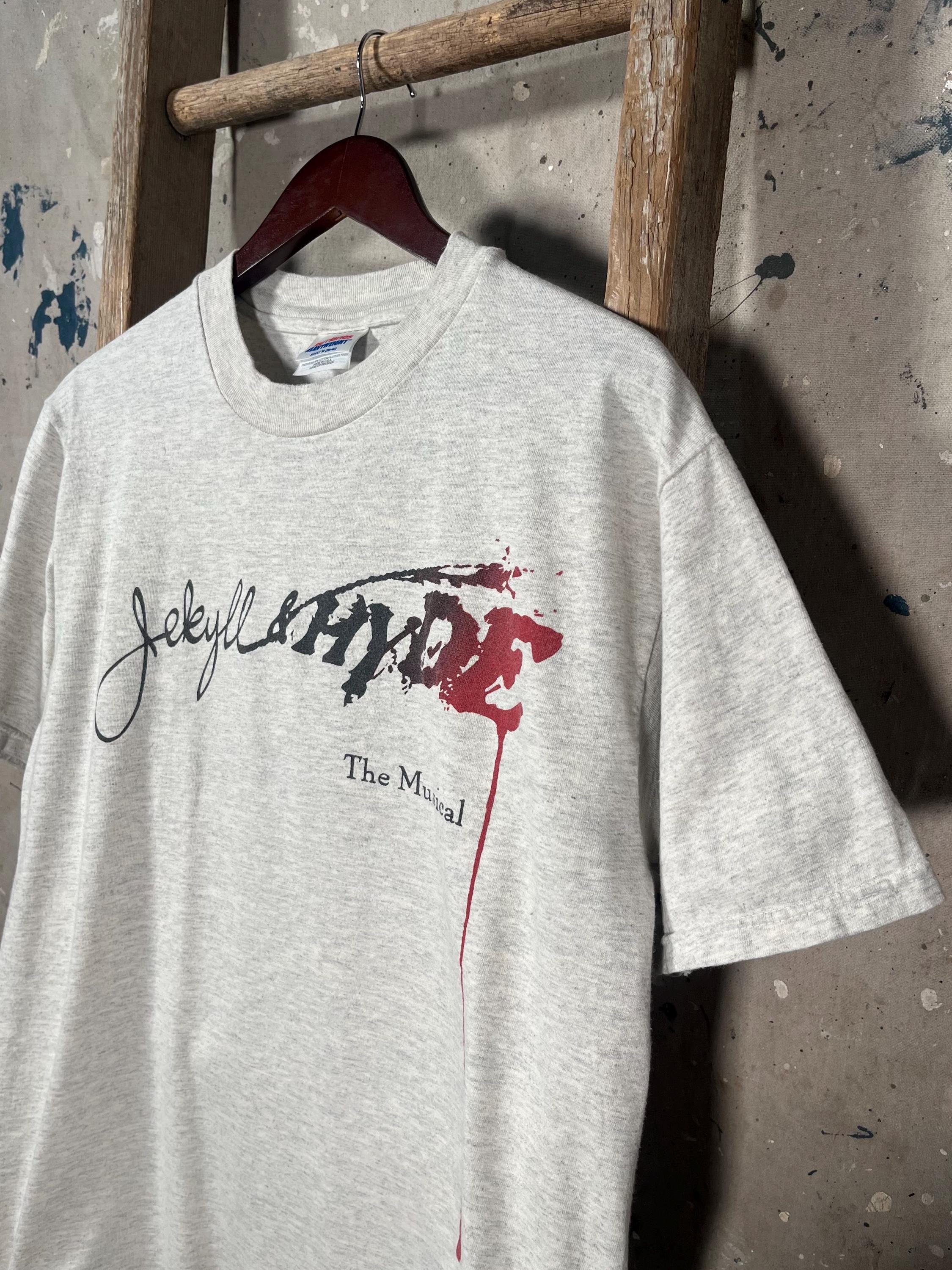 1990s Jekyll & Hyde The Musical T-Shirt. Features double sided screen printed graphic on heather grey t-shirt. Made in USA. Good vintage condition - see photos.