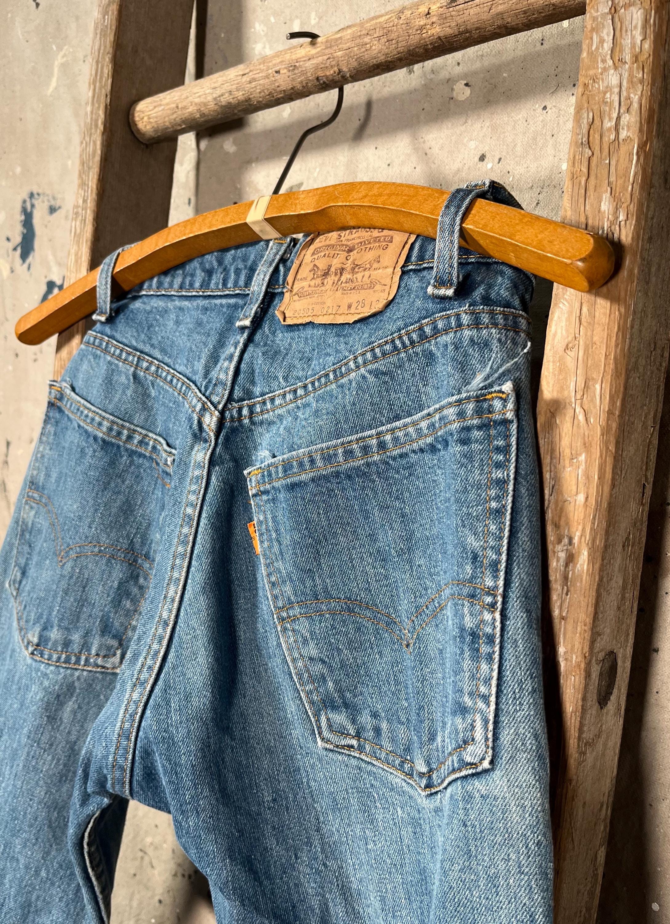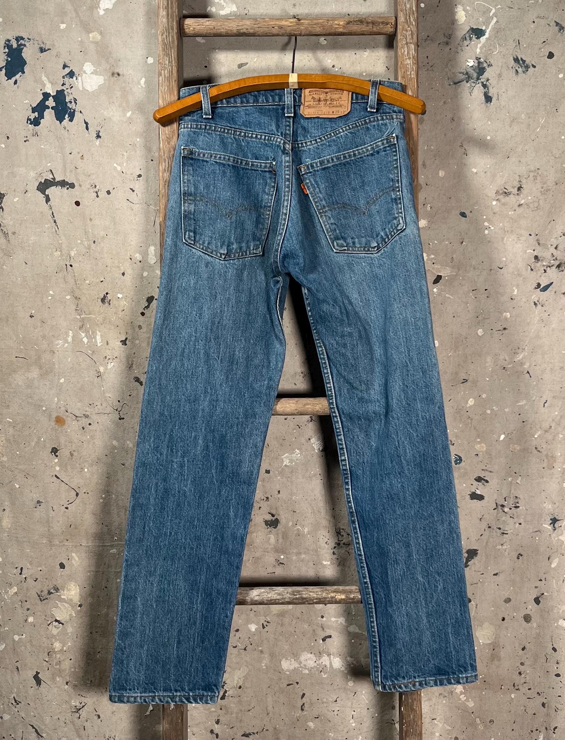 1980s Levi's 505 0217 denim jeans . Orange tab Levi's with classic relaxed fit and dark wash. 26 waist , zipper fly jeans. Good condition - see photos .