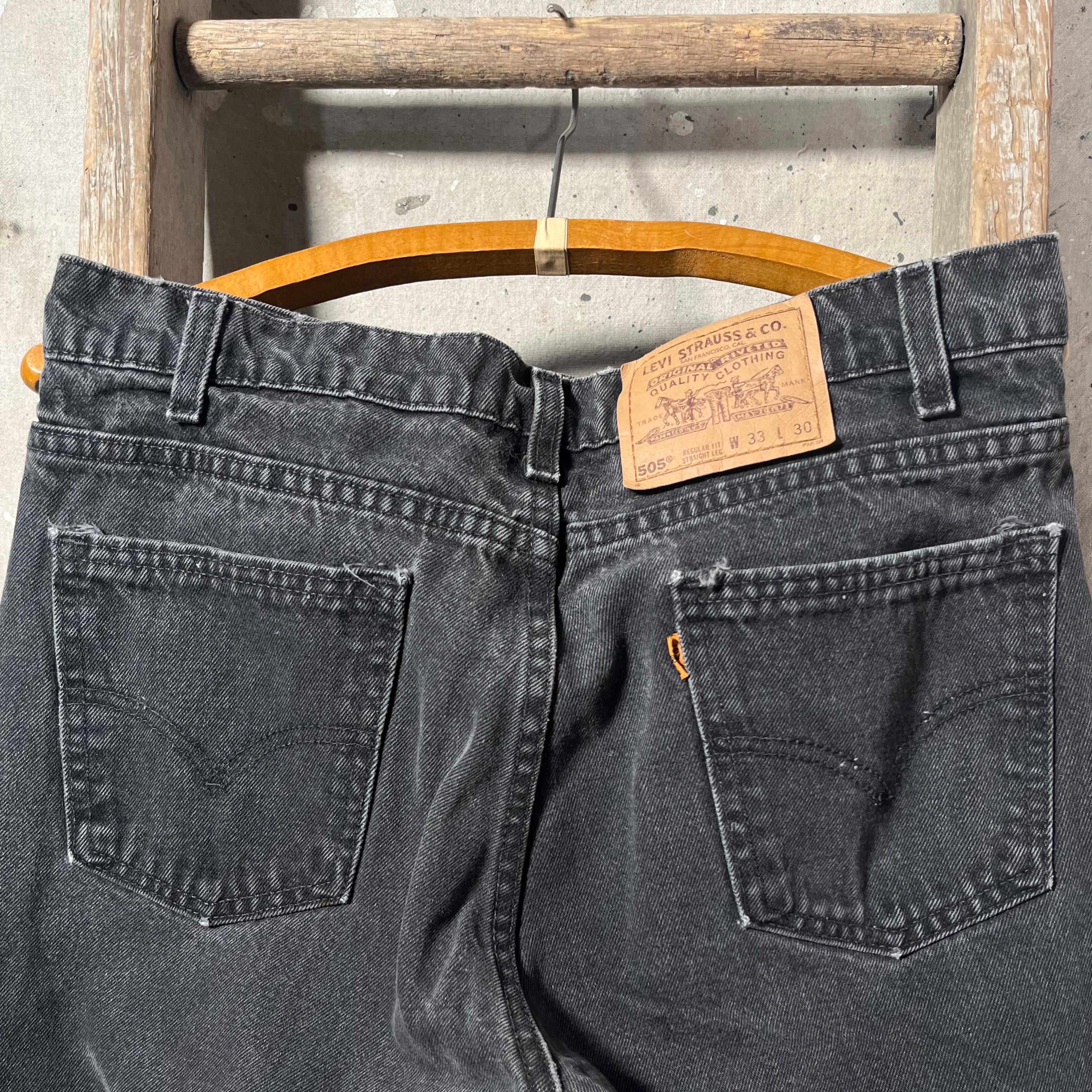 Timeless 1980s black Levi's 505 jeans . Orange tab levi's with a straight leg relaxed fit. 30 waist . Little natural distressing - see photos . Good condition.
