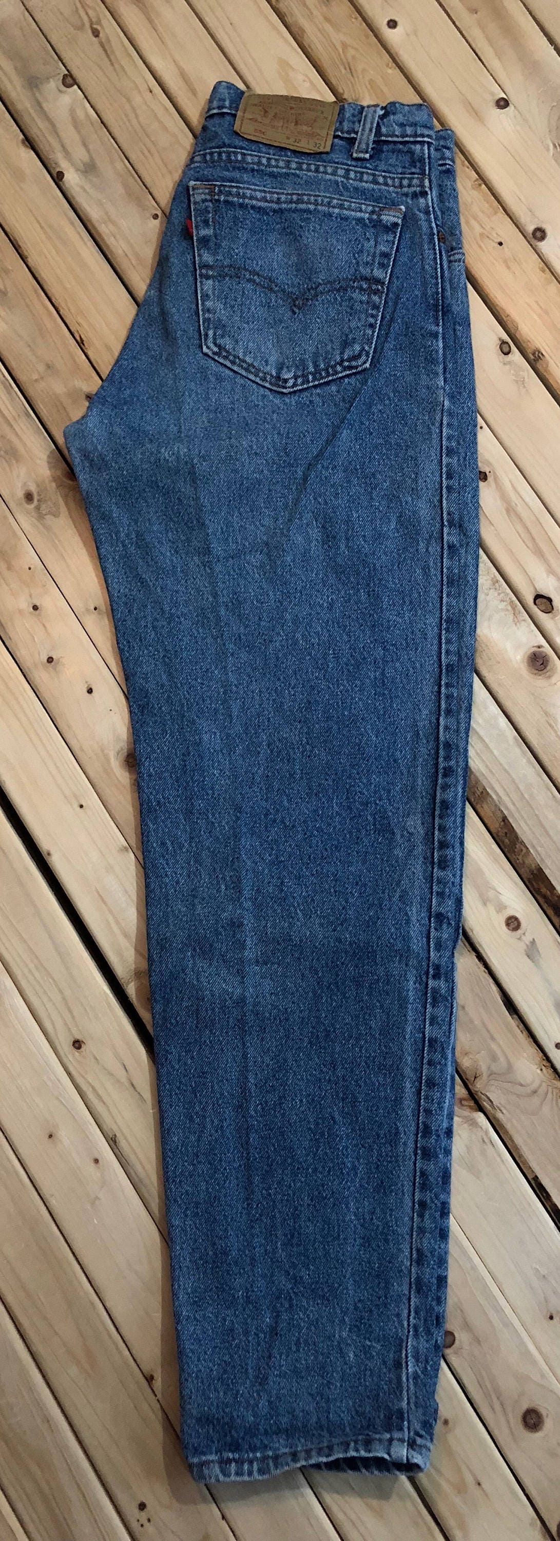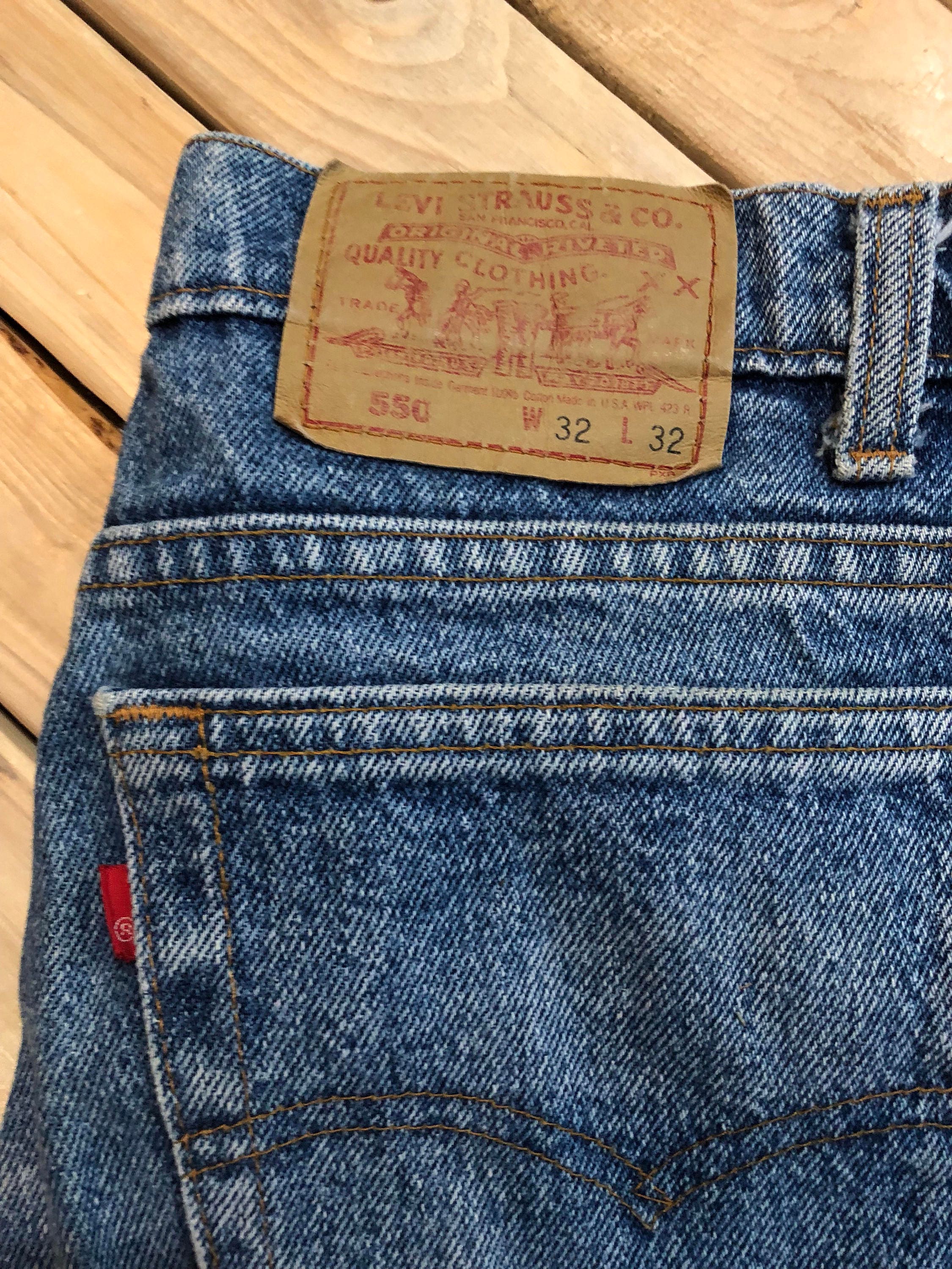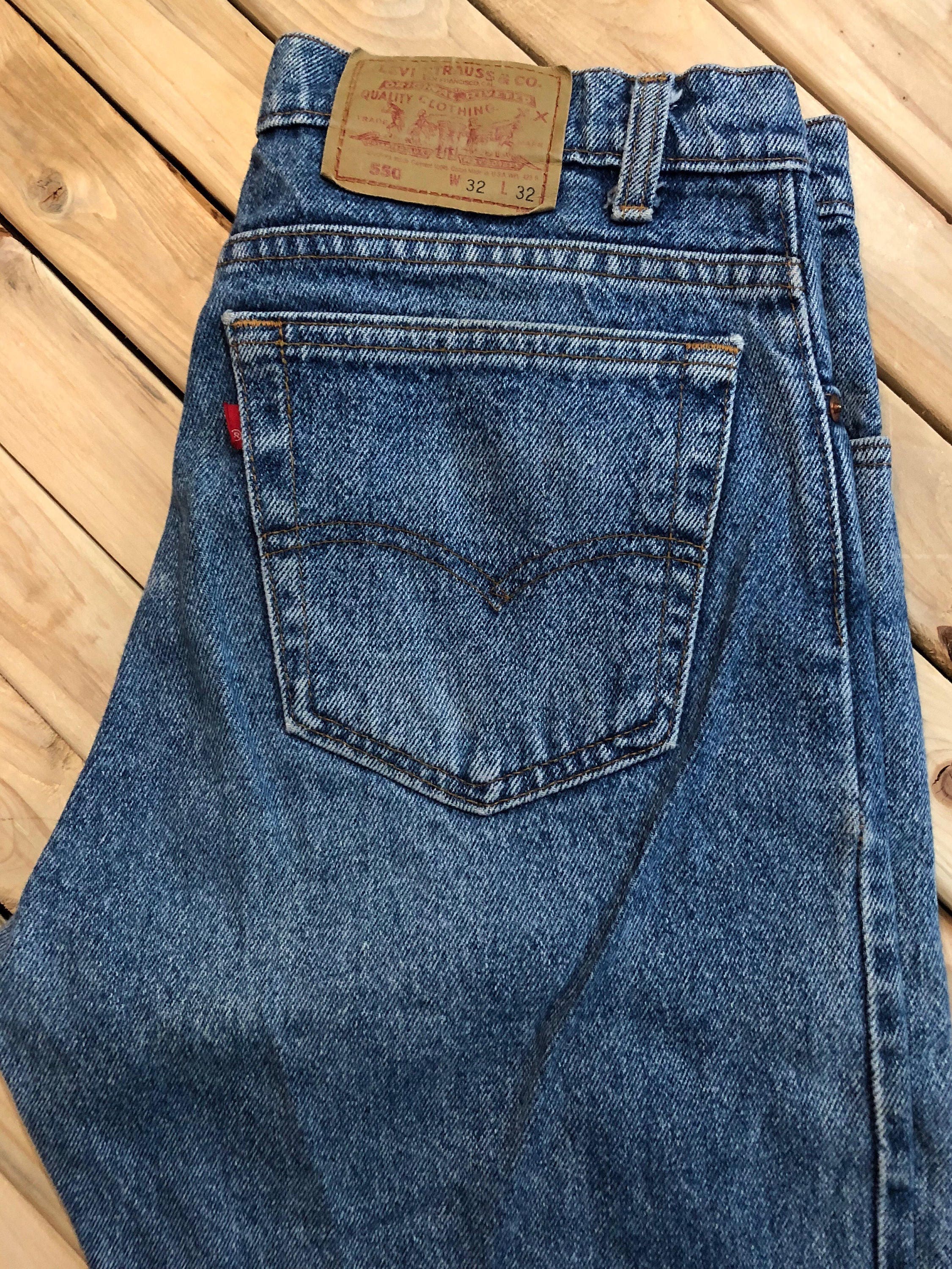 Levi's 550 XX Jeans. (Relaxed fit) Sits at waist, tapered leg, mid rise, classic fit relaxed through hip and thigh. 100% Cotton denim, made in USA. Great condition, with perfect wear.