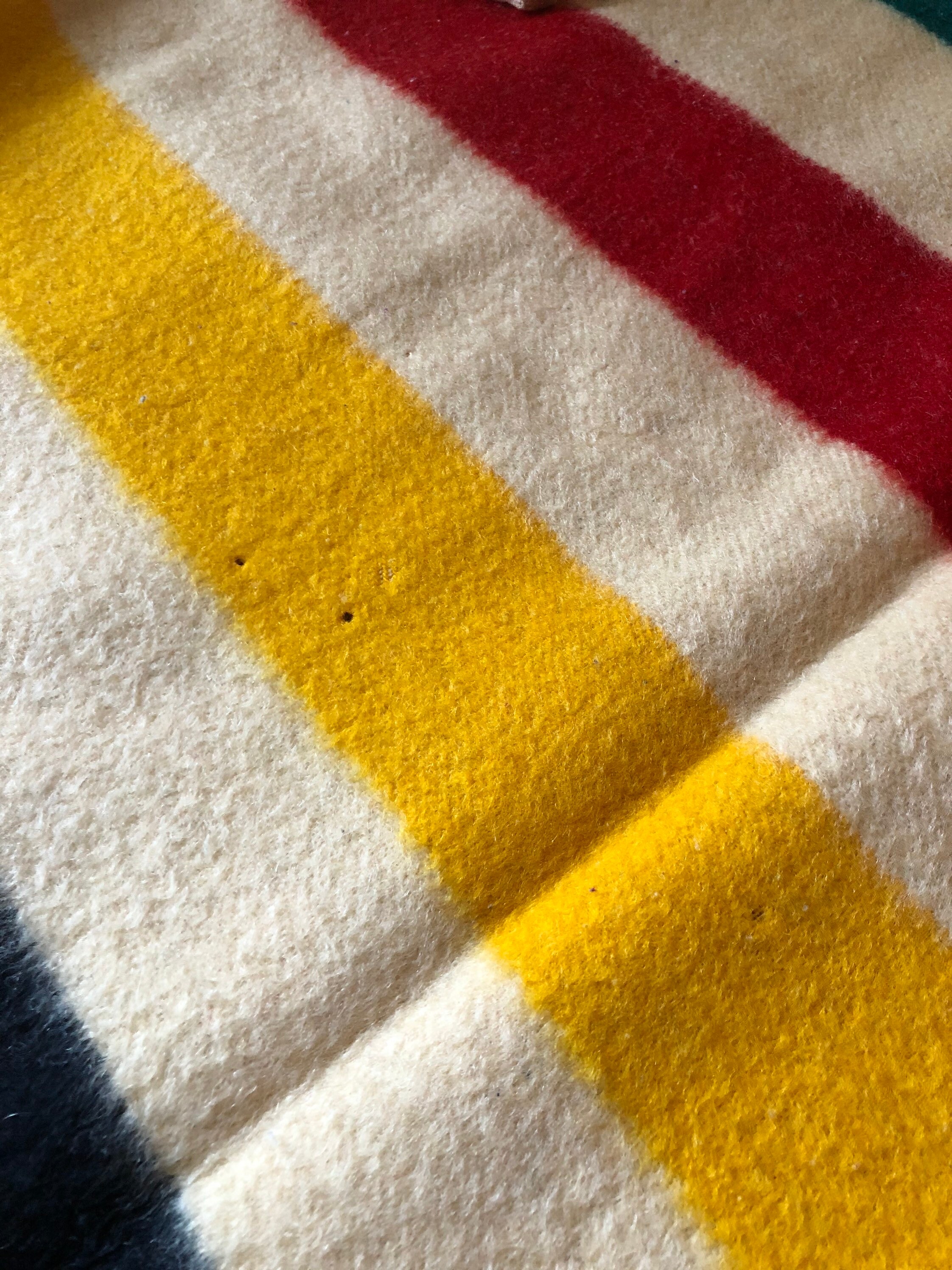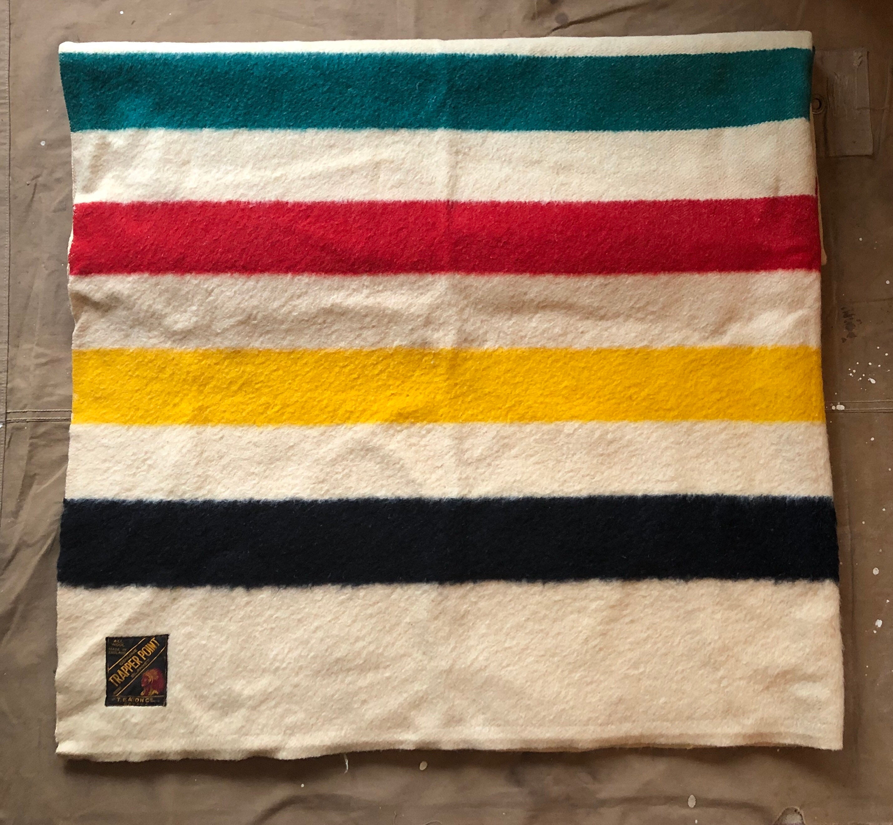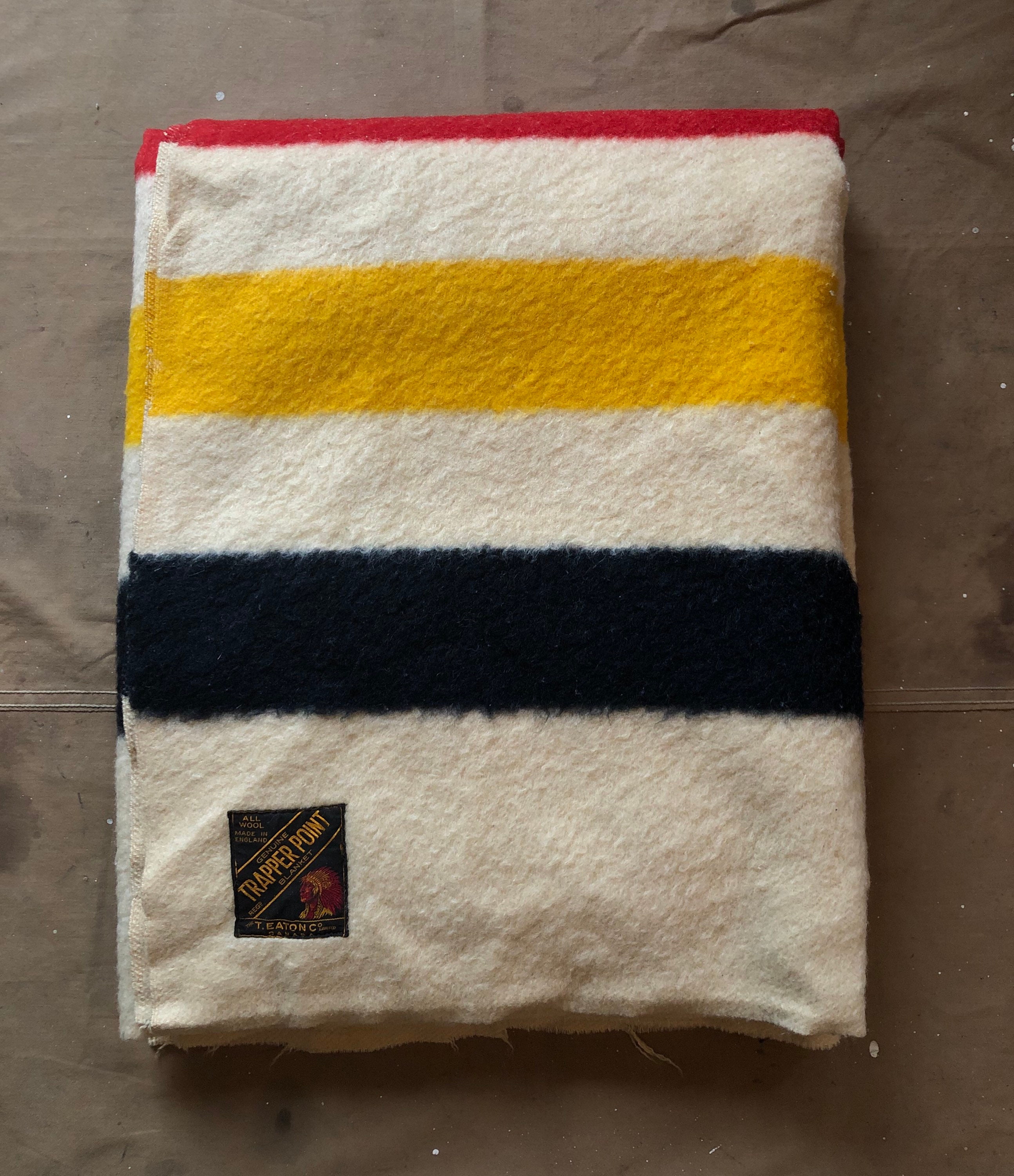 1950s Eaton trapper blanket. Timeless 4 Point multi stripe wool blanket. Vibrant colors, beautiful quality, heavy wool nap. Excellent condition.